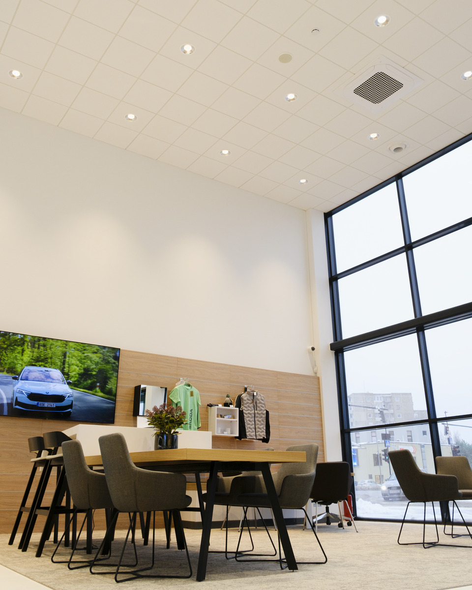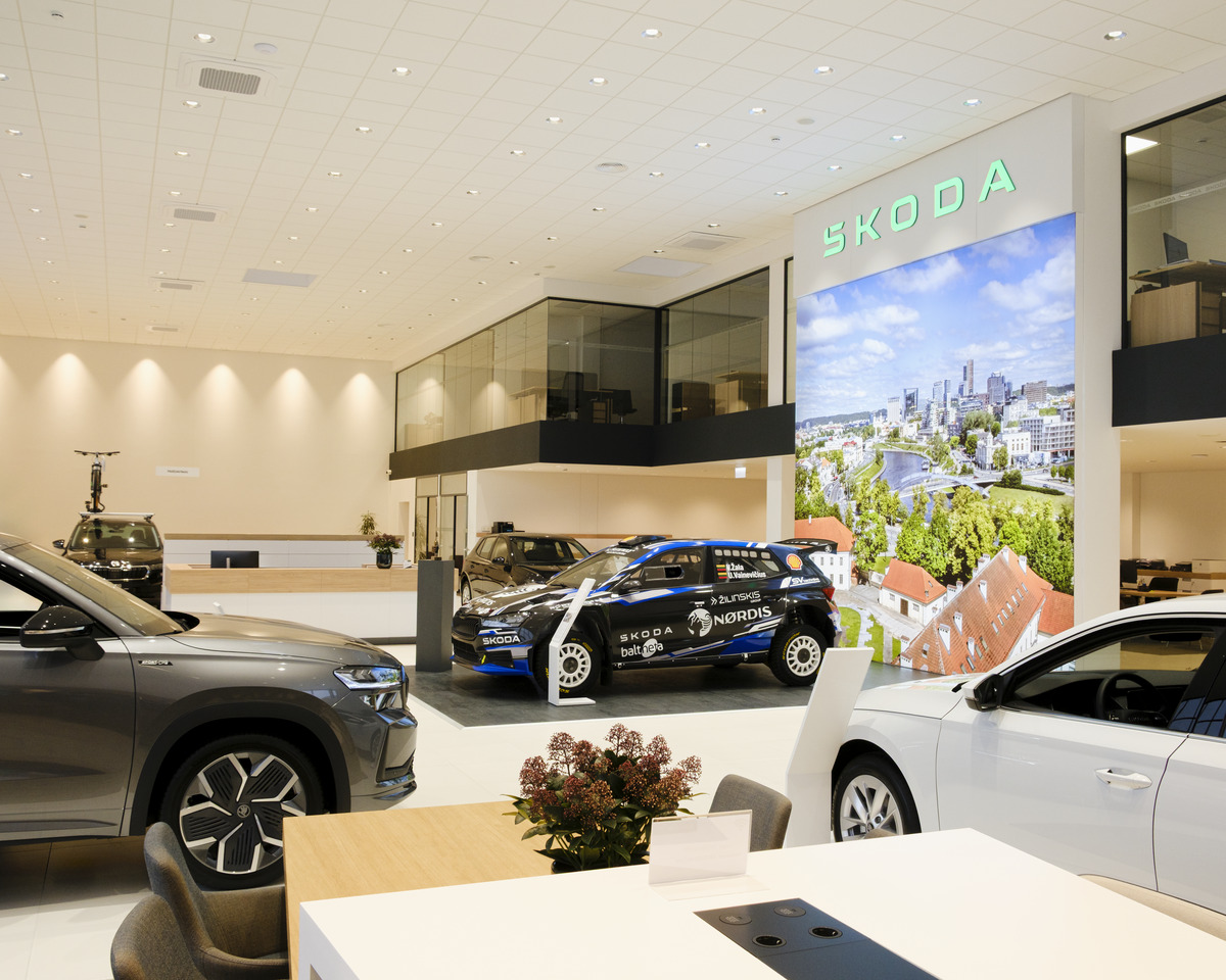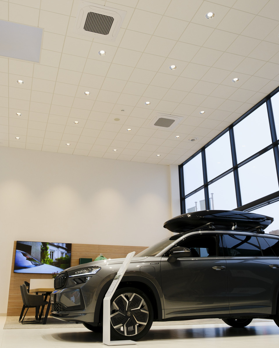 Im Škoda‑Showroom in Vilnius ist ein Raum entstanden, der Design und Funktionalität überzeugend verbindet. Die klare, zeitgemäße Gestaltung der Architektur wird durch eine ebenso durchdachte Innenraumlösung ergänzt – mit einem besonderen Fokus auf Akustik.