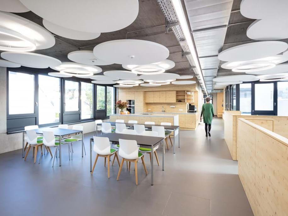 Das Casino mit der großen Gemeinschaftsküche ist der „Marktplatz“. Hier trifft man sich zu fachlichen und persönlichen Gesprächen und geselligen Beisammensein.