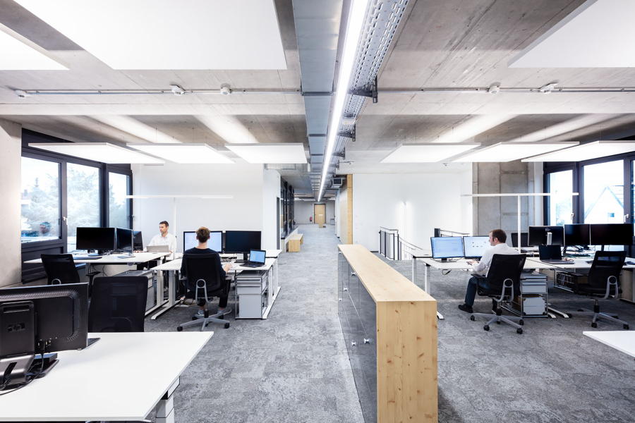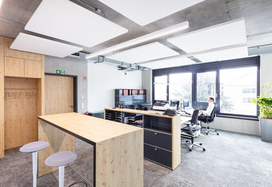 Nach einer ausführlichen Bedarfsanalyse und Befragung der Mitarbeiter entstand auf einer ca. 1000 qm großen Fläche, verteilt auf zwei Stockwerke, eine „Arbeitswelt“, in der die funktionalen Abläufe und individuelle Wünsche des Teams optimal umgesetzt wurden.