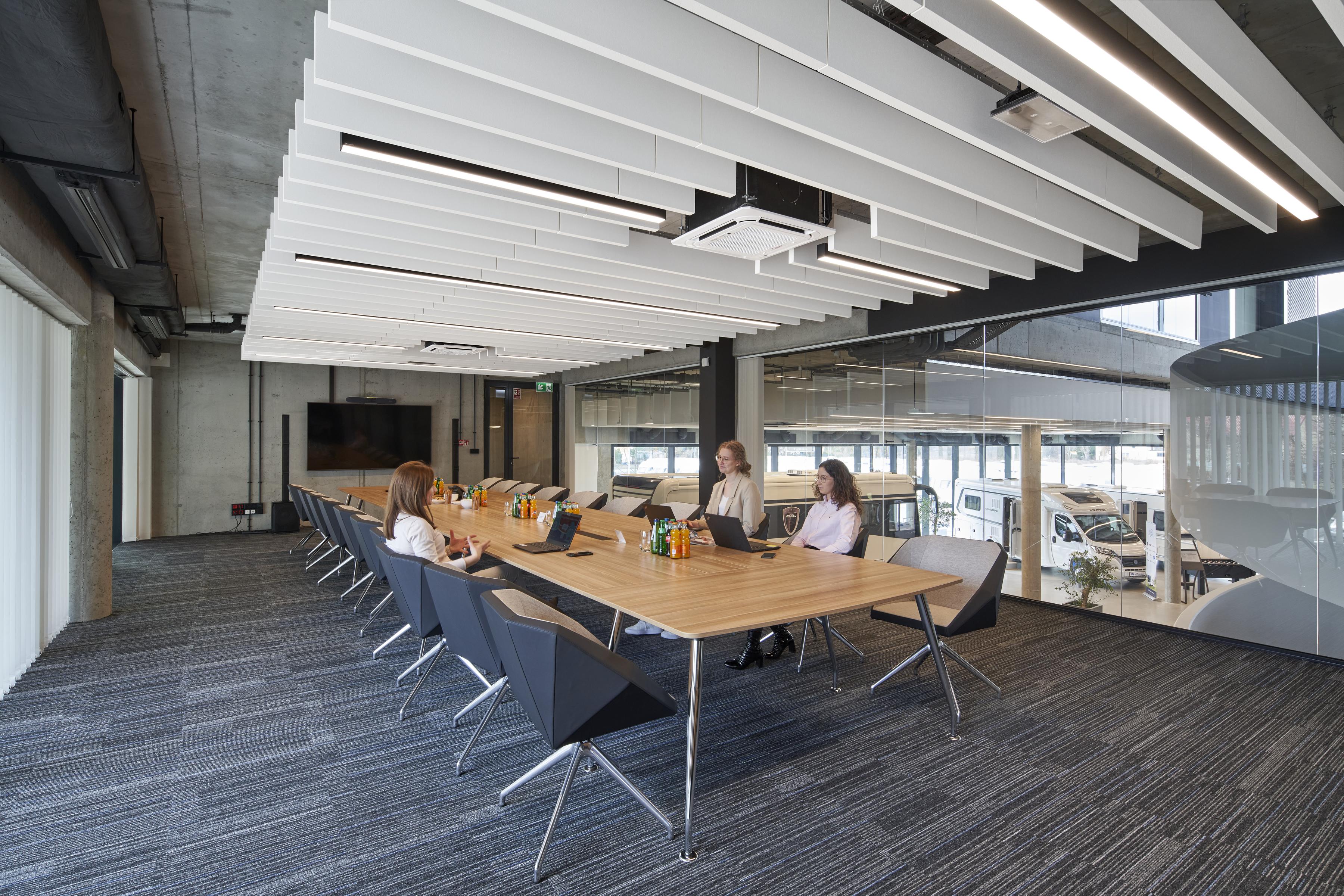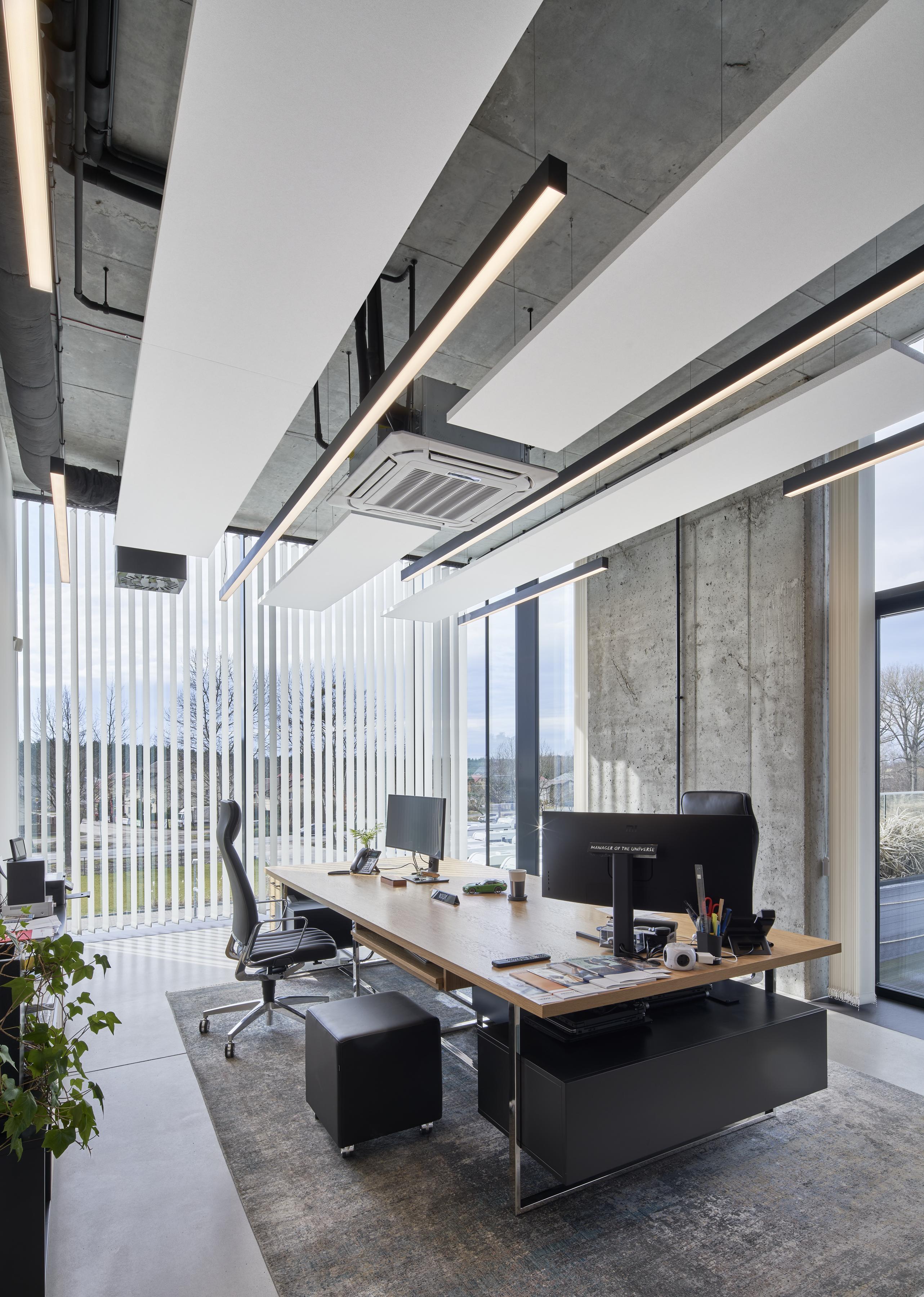 2N-Everpol Sp. z o. o. ist in erster Linie ein Arbeitsplatz mit hohem Wohlfühlfaktor, dank der großzügigen Räume und der freundlichen Architektur. Für die akustische Gestaltung der Innenräume wurden mehr als 200 frei hängende Ecophon Solo Rectangle Absorber und 360 vertikale frei hängende Ecophon Solo Baffle Absorber konzipiert. In einem so großen Raum war es eine große Herausforderung, den Mitarbeitern eine angemessene Akustik zu bieten. Glücklicherweise haben die Planer des Büros Staruń Wanik Architekci diese ohne Probleme gemeistert.