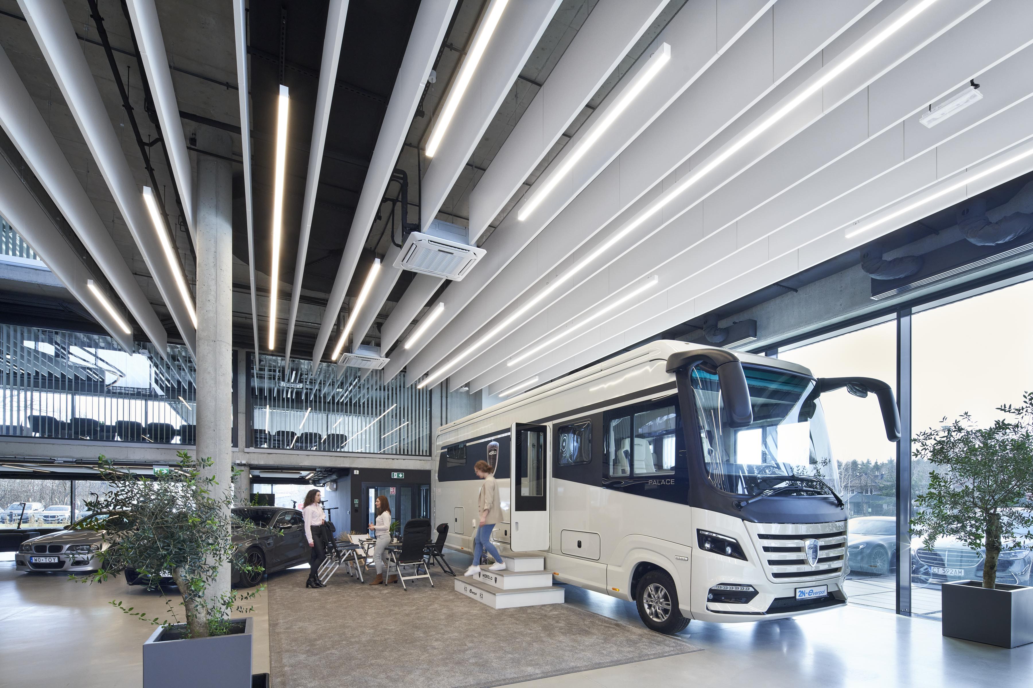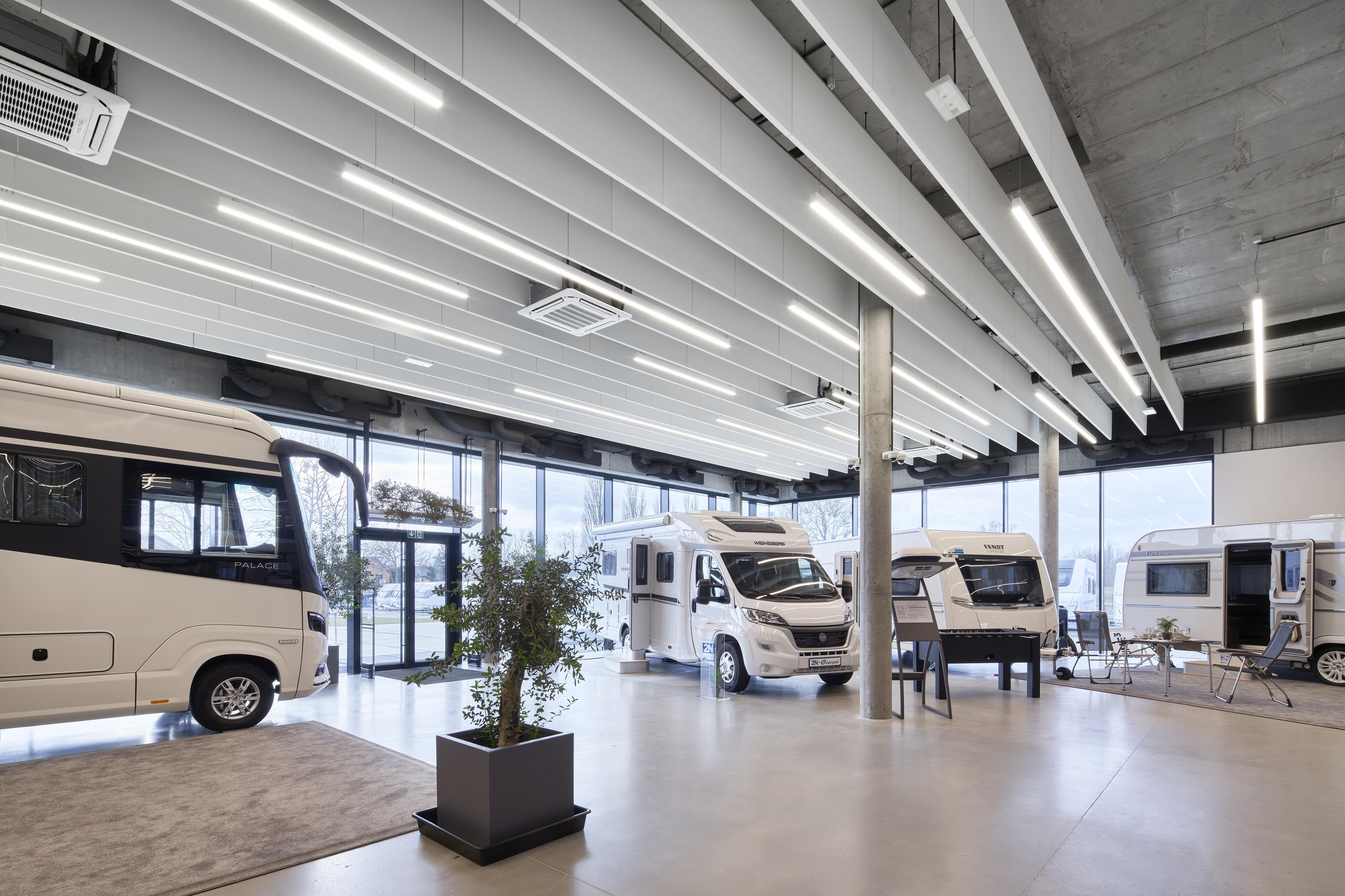 Der großzügige und moderne Firmensitz mit einer Gesamtfläche von ca. 7000 m² umfasst einen Ausstellungsraum für Caravaning-Fahrzeuge, ein Geschäft mit Caravaning-Zubehör, Büroräume mit Konferenzräumen sowie ein Lager und Dienstleistungen.