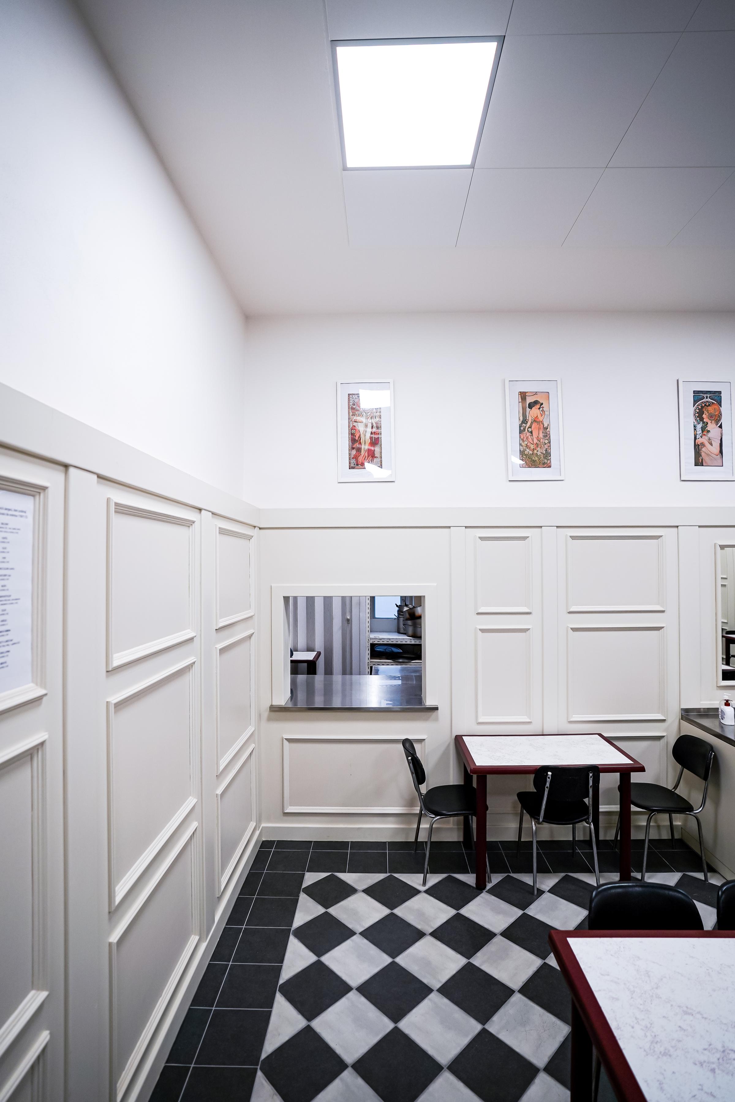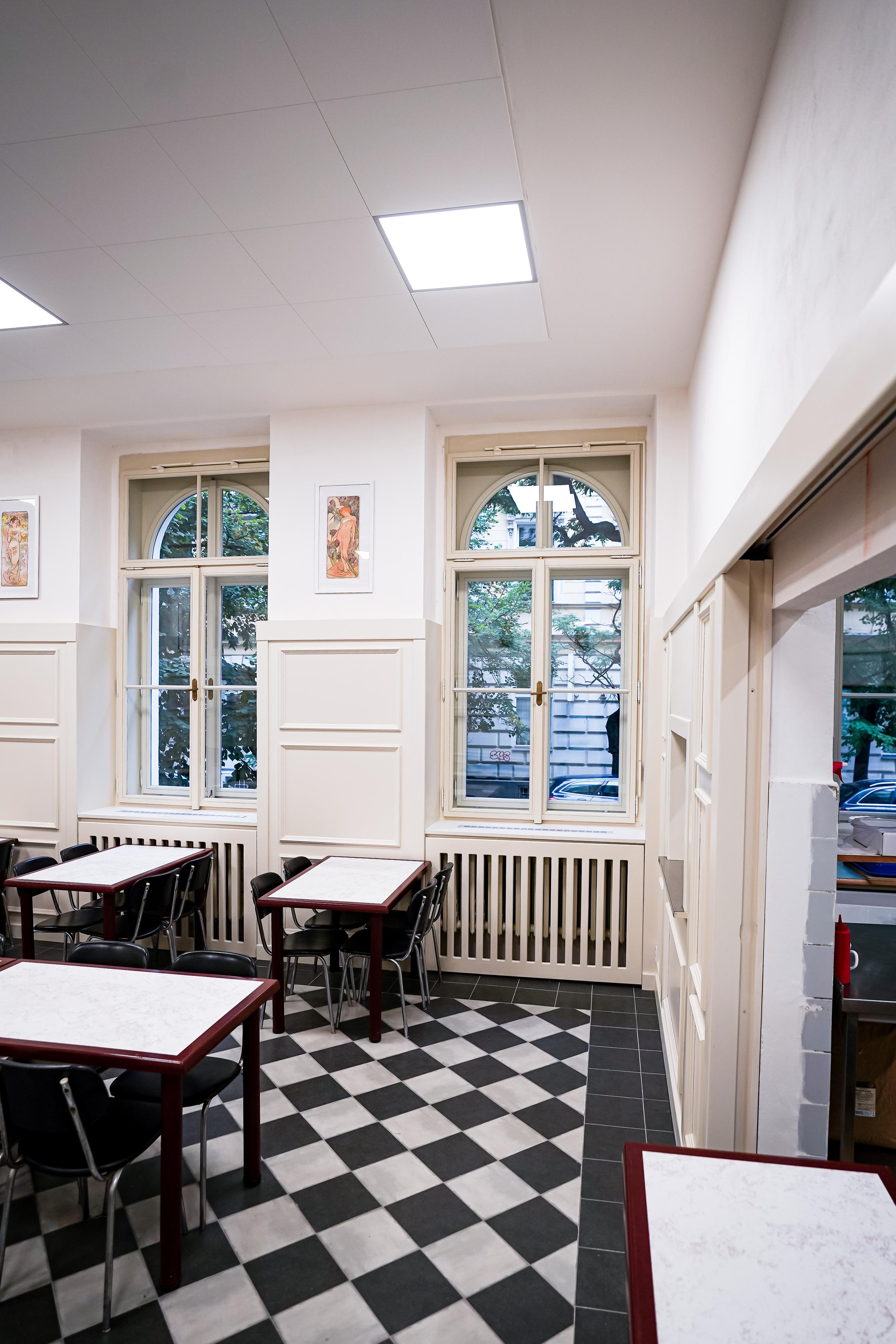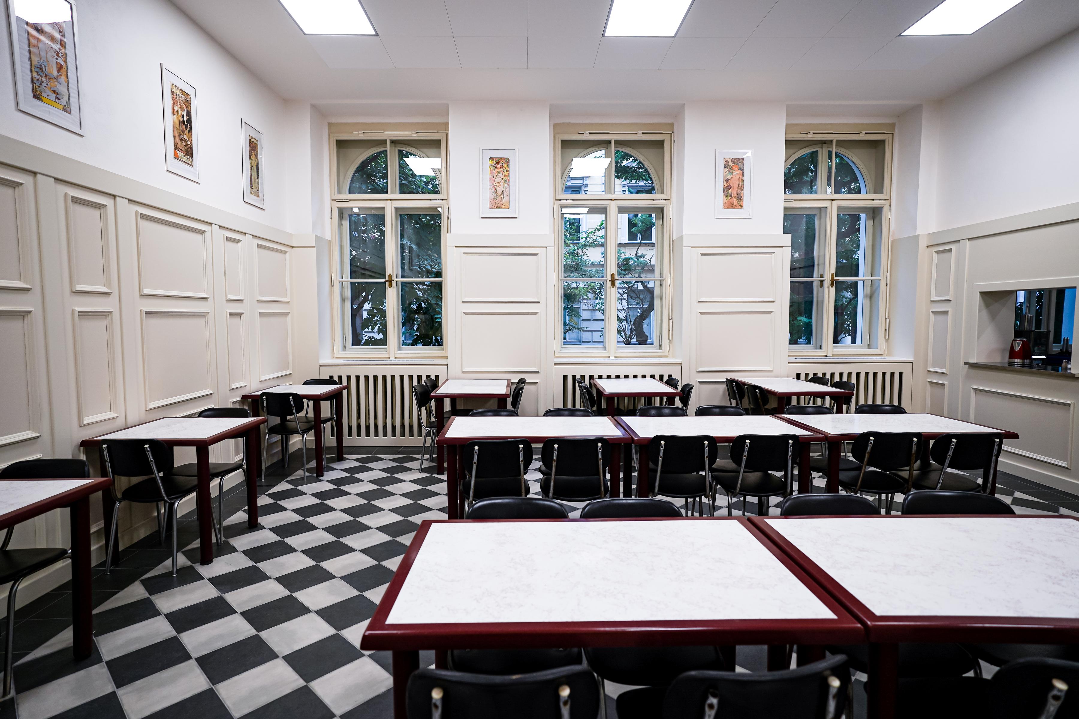 Die lautesten Räume, die durch menschliche Stimmen entstehen, sind zweifelsohne Cafés, Restaurants und Speisesäle. Daher wurde bei der Planung und Umsetzung der akustischen Veränderungen im Speisesaal des Gymnasiums Belgická der Schwerpunkt auf die Verbesserung der Sprachverständlichkeit und vor allem auf die Reduzierung des Lärms im Raum gelegt.