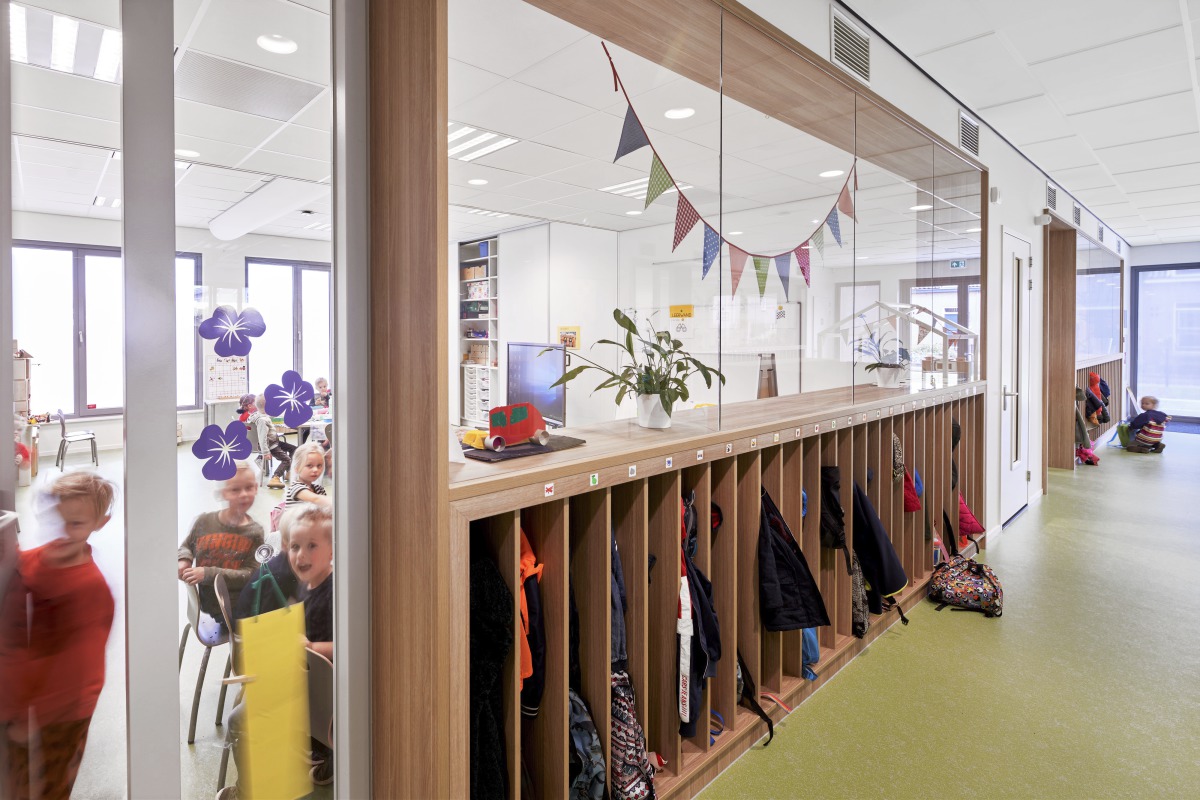 Het Liesveld ist für alle Kinder zwischen 0 und 12 Jahren geeignet. Neben zwei Grundschulen gibt es auf dem Kinderbetreuungs- und Bildungscampus auch einen Hort, eine Kinderkrippe und eine Bibliothek. Im Erdgeschoss des zweistöckigen Gebäudes befinden sich die Eingangshalle, die Bibliothek und die Klassenzimmer der Jahrgangsstufe 1-2. Im Obergeschoss öffnen sich die Klassenzimmer der Jahrgangsstufen 3-8 zum breiten zentralen Korridor, der effektiv als großer offener Lernraum dient.