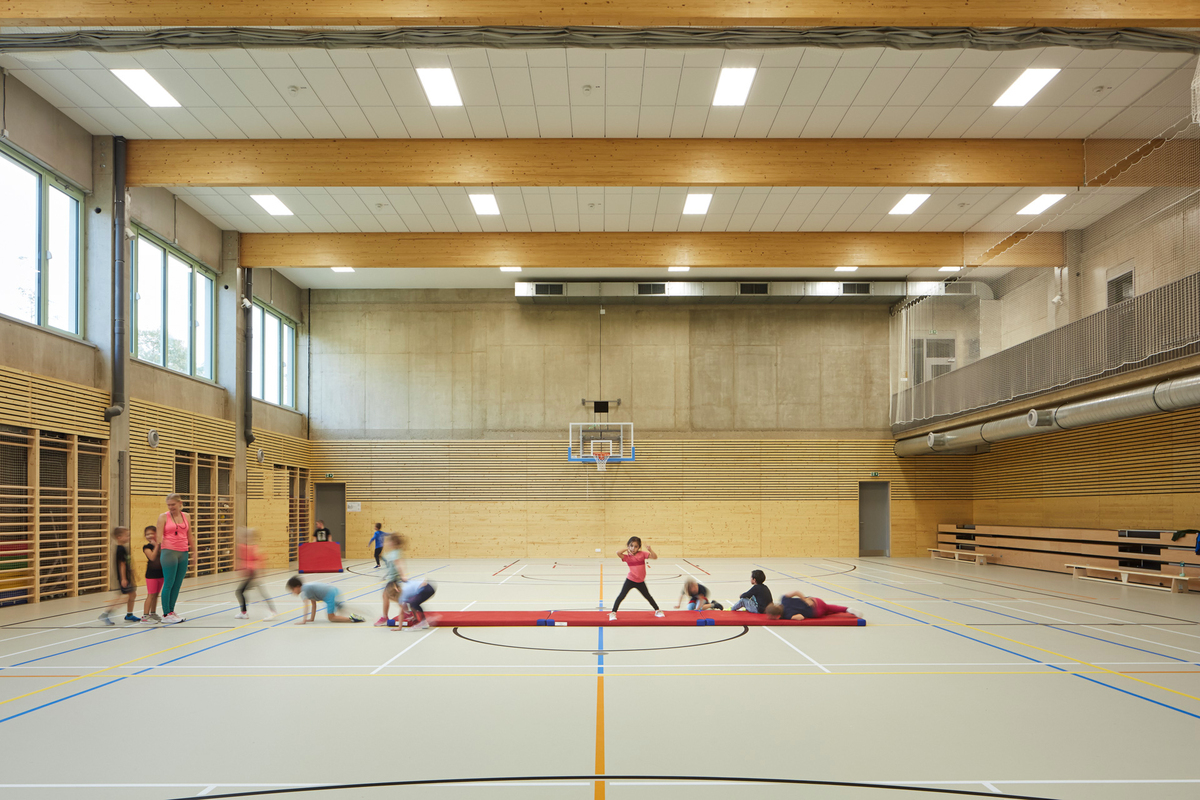 Entworfen von ATELIER 6, erfüllt das Gebäude die Standards eines Passivhauses – ein anspruchsvoller Ansatz für nachhaltige Architektur, der herausragende Energieeffizienz, thermischen Komfort und Raumluftqualität garantiert. Der Entwurf legt besonderen Wert auf Nachhaltigkeit, Tageslicht und akustischen Komfort und schafft so eine ruhige und inspirierende Atmosphäre für Schüler*innen und Lehrkräfte.