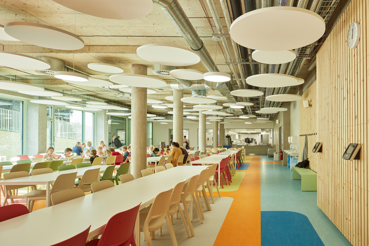 Akustischer Komfort spielt eine zentrale Rolle für die Lernumgebung. In Ondřejov wurde besonders auf die Klangqualität im gesamten Gebäude geachtet – von den Klassenzimmern über die Flure bis zur Mensa.