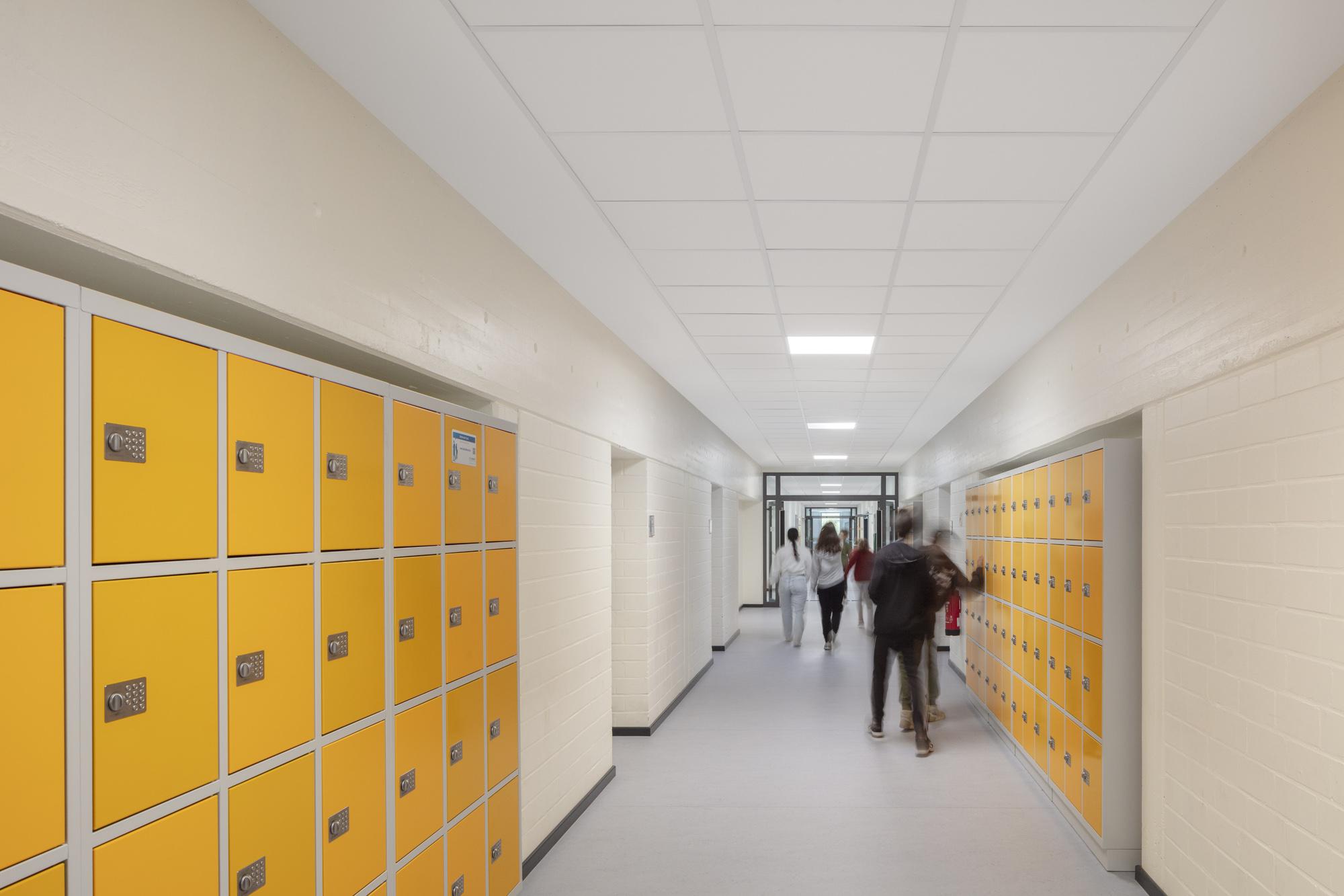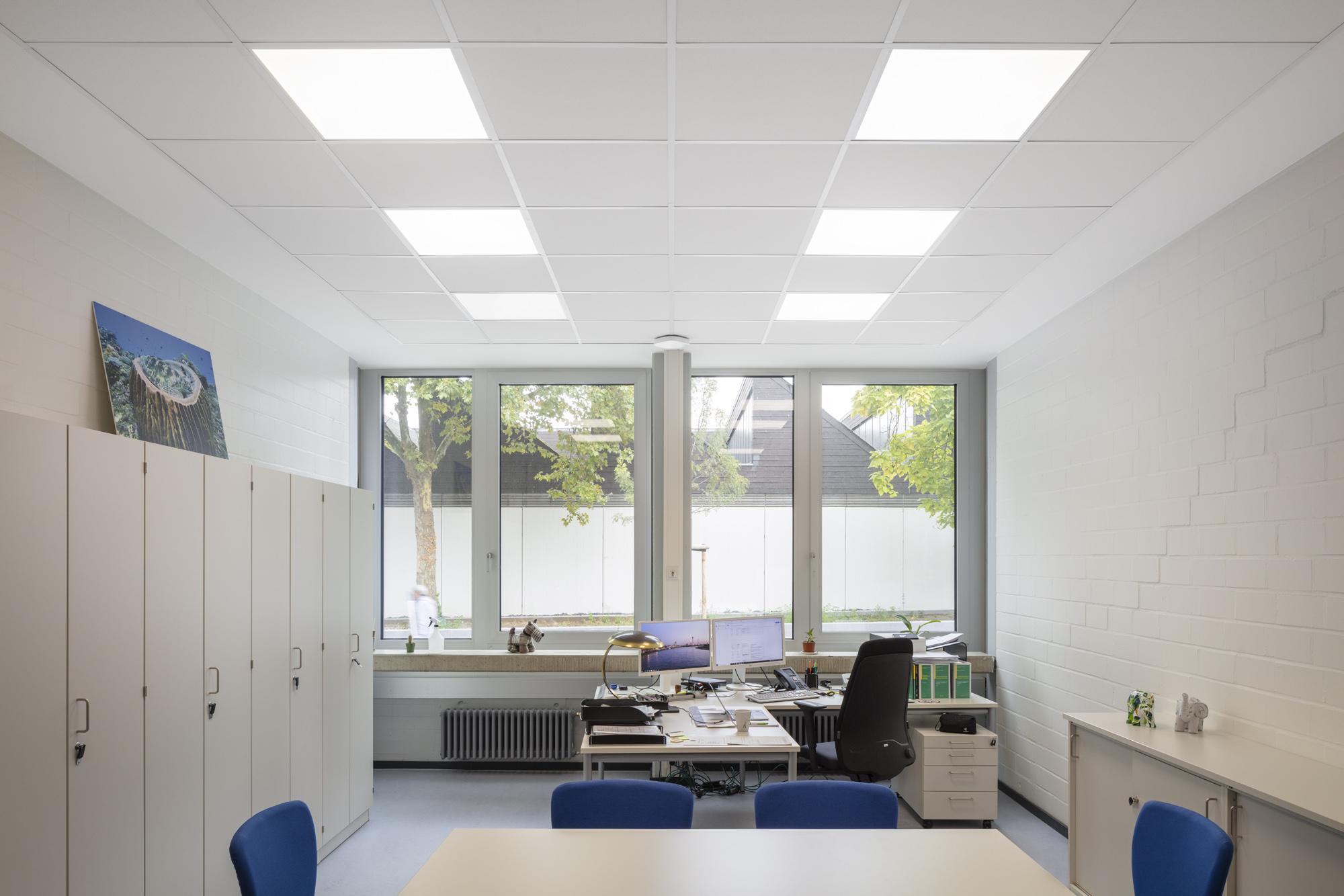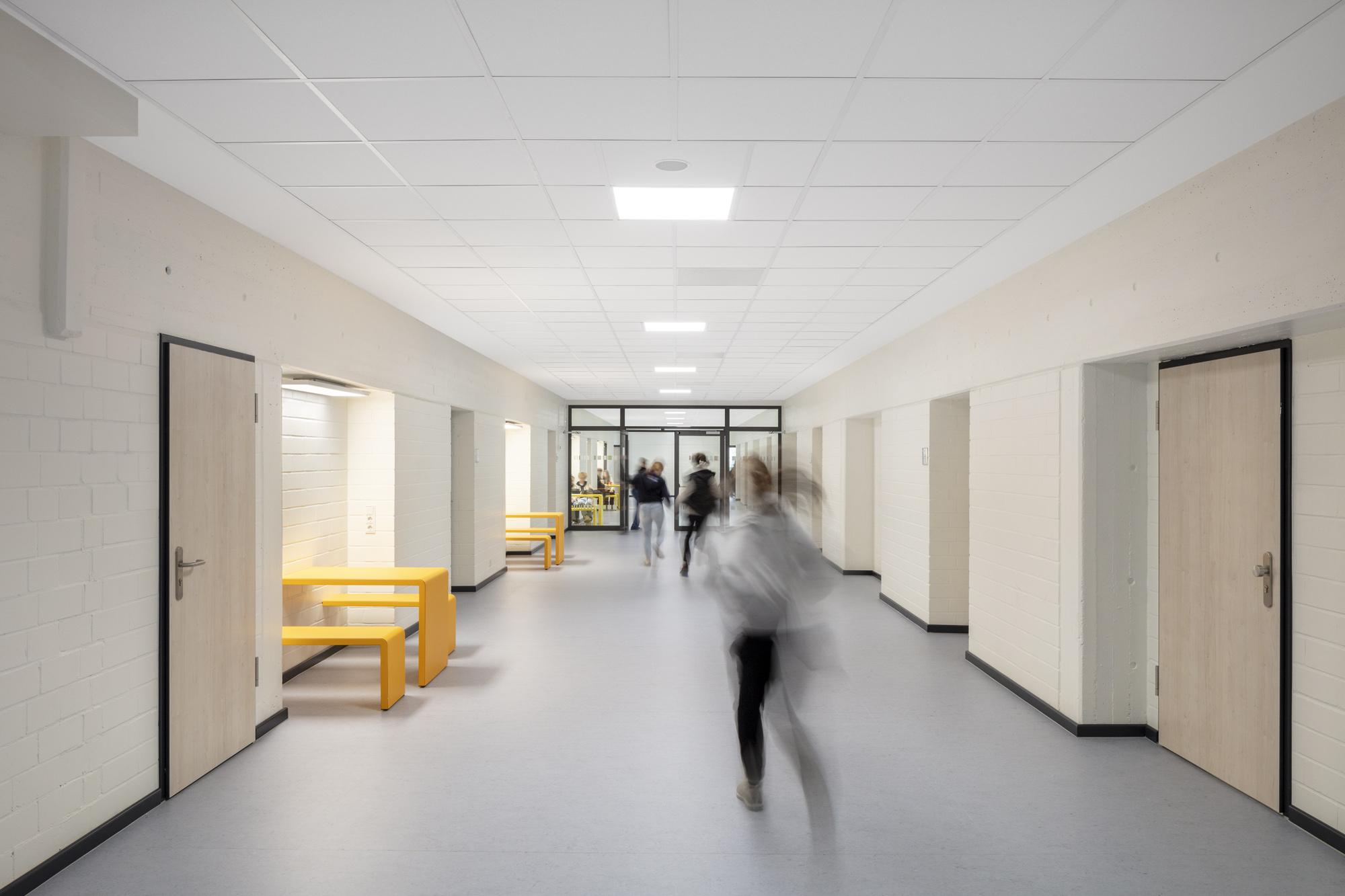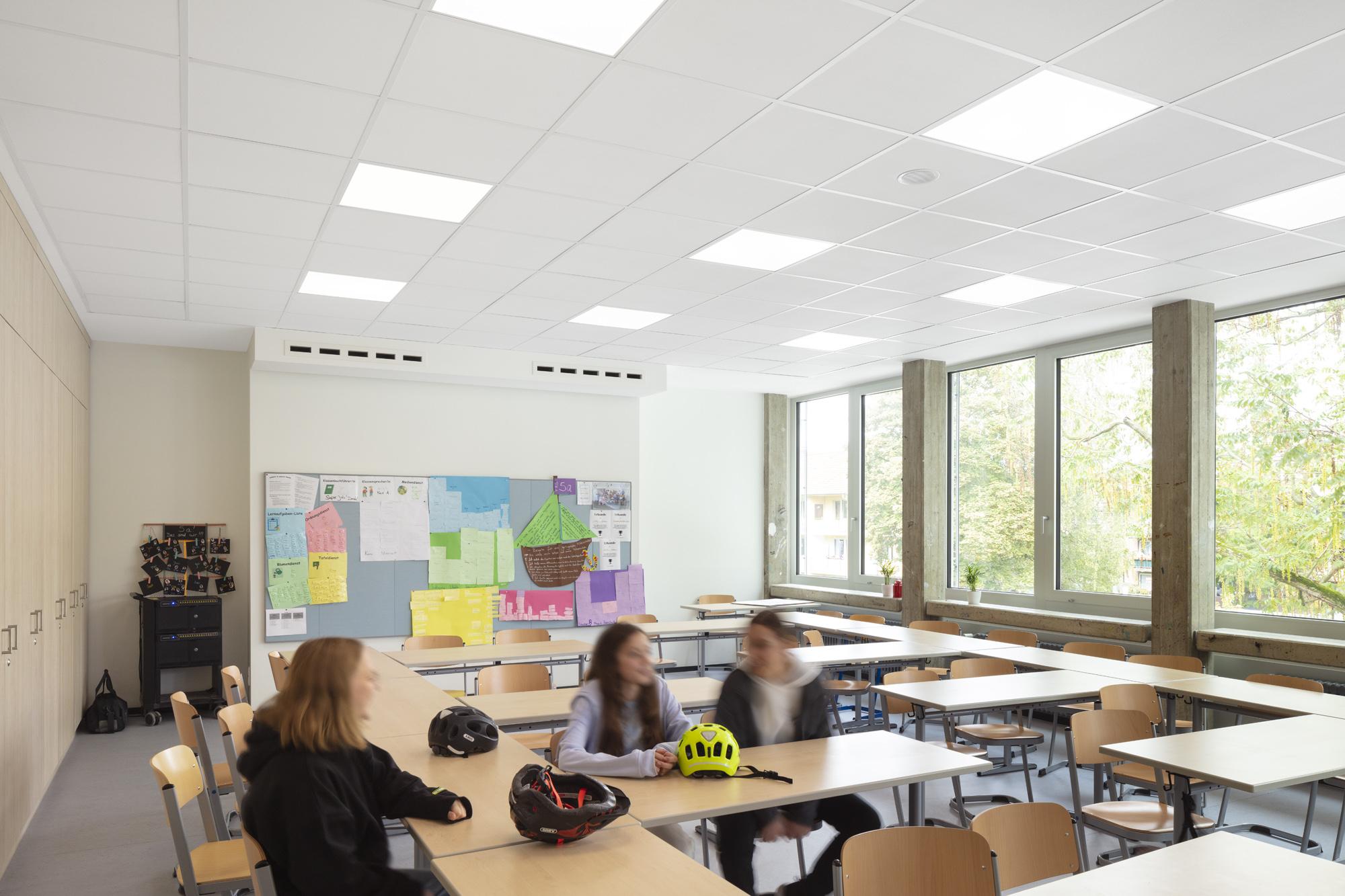 Für dieses Pilot- und Referenzobjekt fand das Architekturbüro agn Niederberghaus & Partner GmbH frühzeitig geeignete Ecophon Akustiklösungen, wissend, dass eine gute Akustik eine Investition in das Wohlbefinden, das Lernen und den Lernkomfort ist. Erreichen lässt sich dies mit vollflächig verlegten Akustikdecken aus höchstabsorbierenden Materialien sowie Wandabsorbern, die den Unterricht auch in praktischer Hinsicht unterstützen, weil sie sich als Pinnwand nutzen lassen.