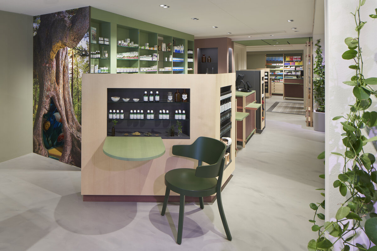 Unter der Architekturleitung von Global Shop Design GmbH und der fachkundigen Montage durch Dewaisol AG wurde mit der Neuen Apotheke Golliez ein modernes und einladendes Einzelhandelsumfeld in einem historischen Gebäude geschaffen. Im Rahmen der Renovation wurden Akustikdecken, bestehend aus Ecophon Master Eg in der Farbe Fresh Clover und Ecophon Focus Ds in der Farbe Scallop Shells, montiert. Diese sind farblich auf die Innenraumgestaltung abgestimmt und fügen sich nahtlos in das Gesamtkonzept ein.