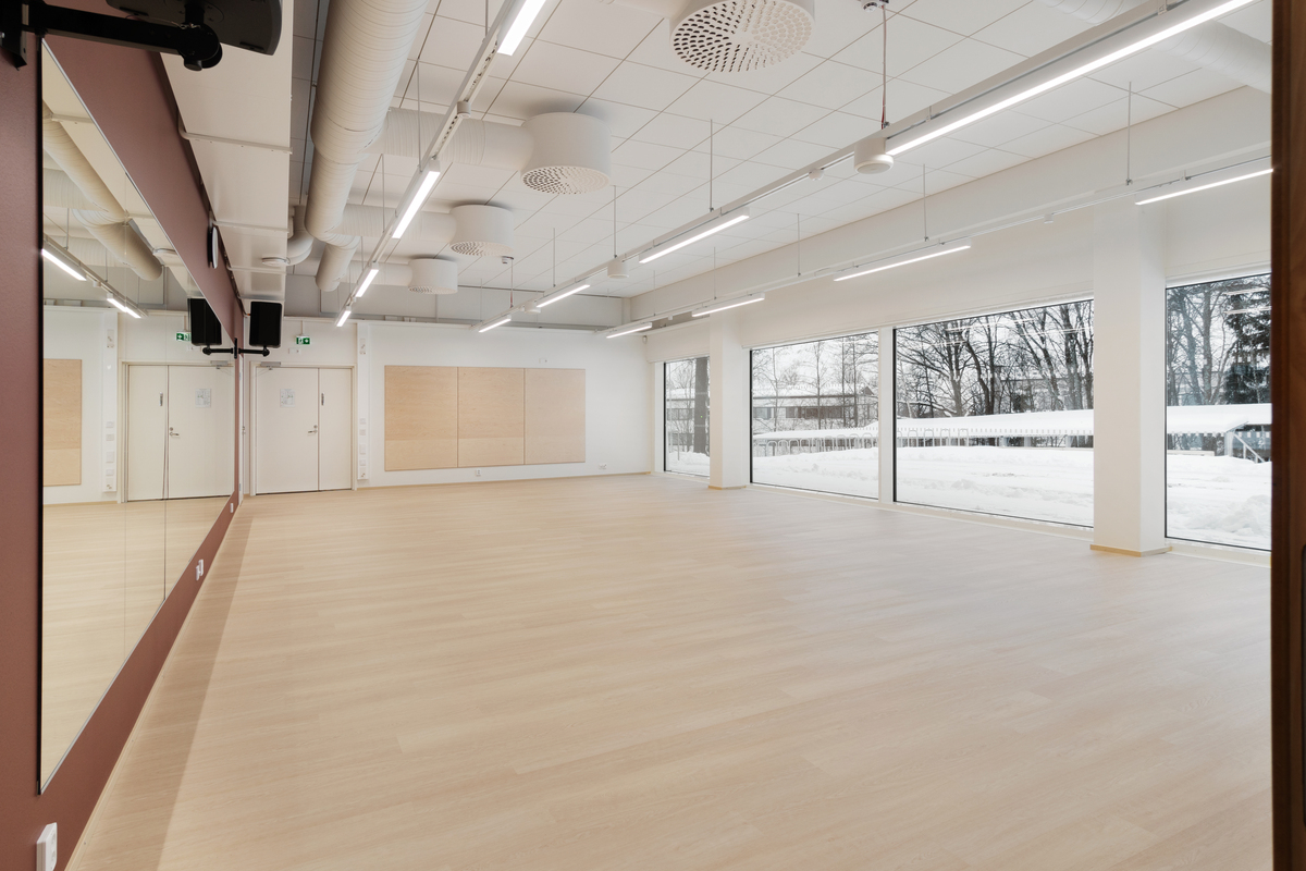 Die Stadt Hämeenlinna hat sich zum Ziel gesetzt, bis 2035 klimaneutral zu werden, was sich auch in ihren Bauprojekten widerspiegelt. Das neue Schulgebäude und die Sporthalle sind beide als A-Energiegebäude klassifiziert und nutzen intelligente LED-Beleuchtung, geothermische Heizung, Solarenergie und Wärmerückgewinnung aus der Abluft.
