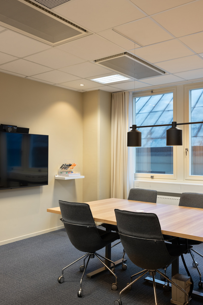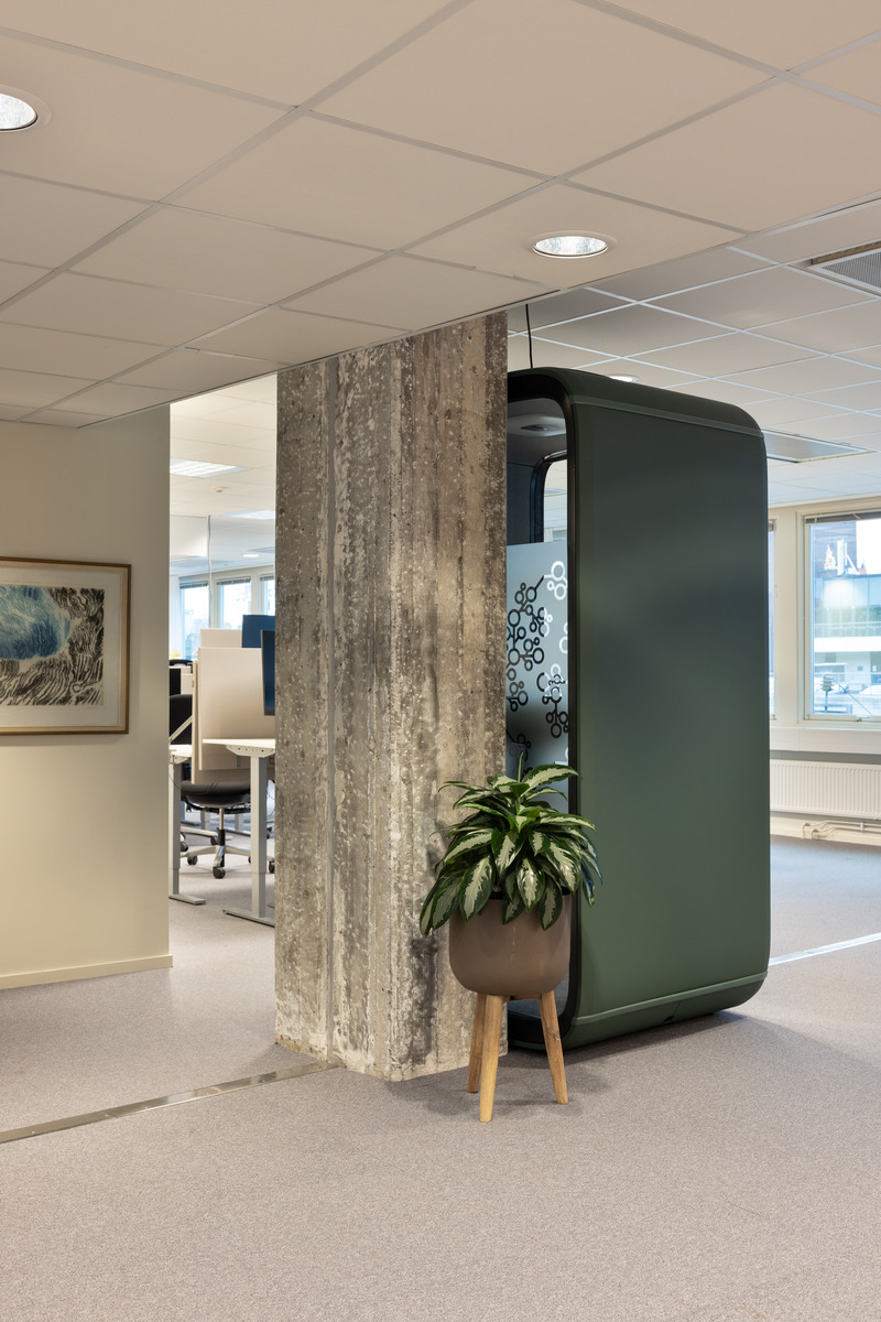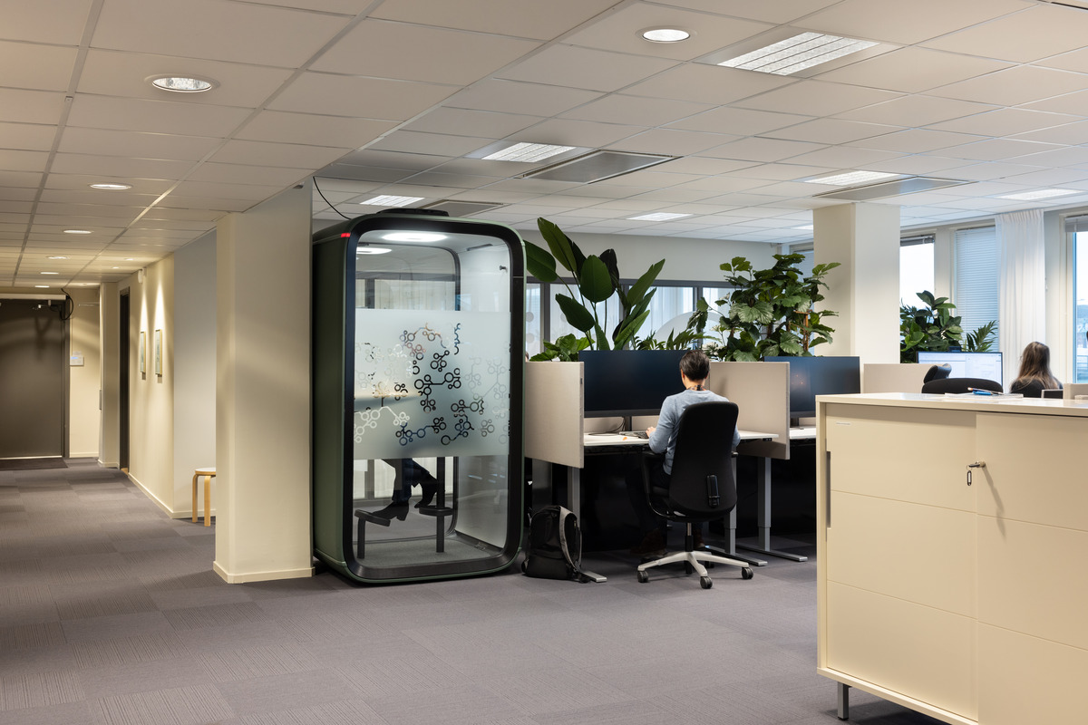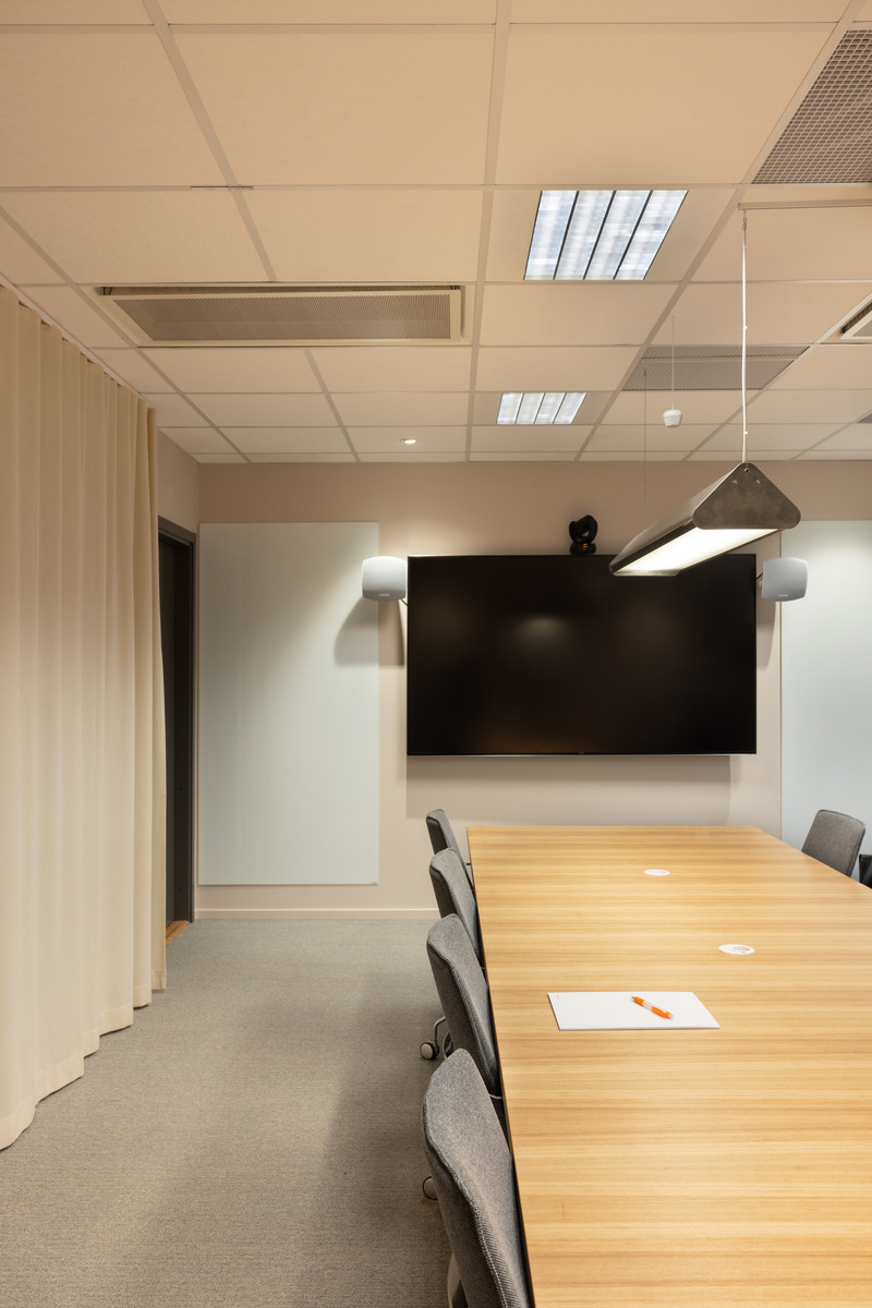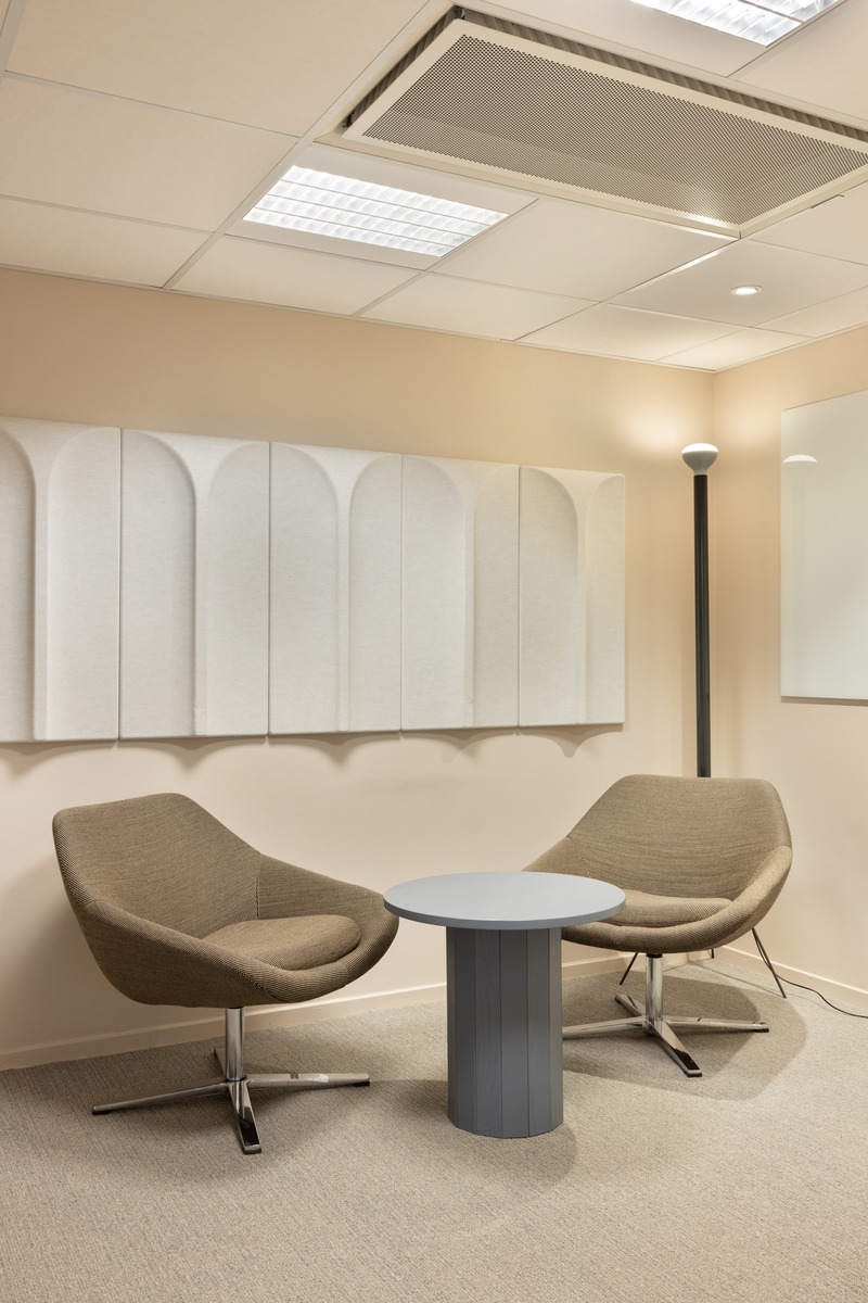 Die akustischen Lösungen basieren auf wiederverwendeten Schallabsorbern, darunter Ecophon Gedina™ A Reuse und Ecophon Focus™ A Reuse. Diese sind Teil von SoundCircularity™ - einer Initiative von Ecophon, die darauf abzielt, die Lebensdauer von Akustikprodukten durch Wiederverwendung zu verlängern. Für Komponenten, die nicht wiederverwendet werden konnten, wurde der Recycling-Service in Anspruch genommen, um sicherzustellen, dass die Materialien einer neuen Verwendung zugeführt werden und nicht auf der Mülldeponie landen.
