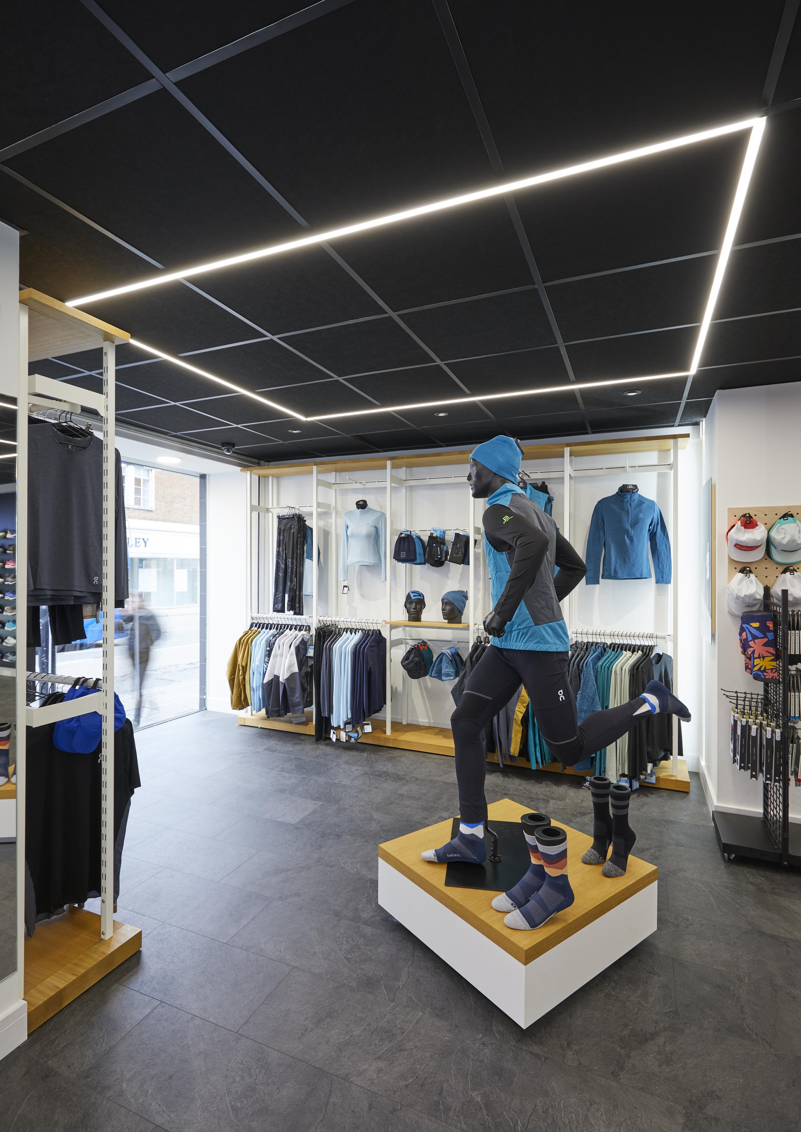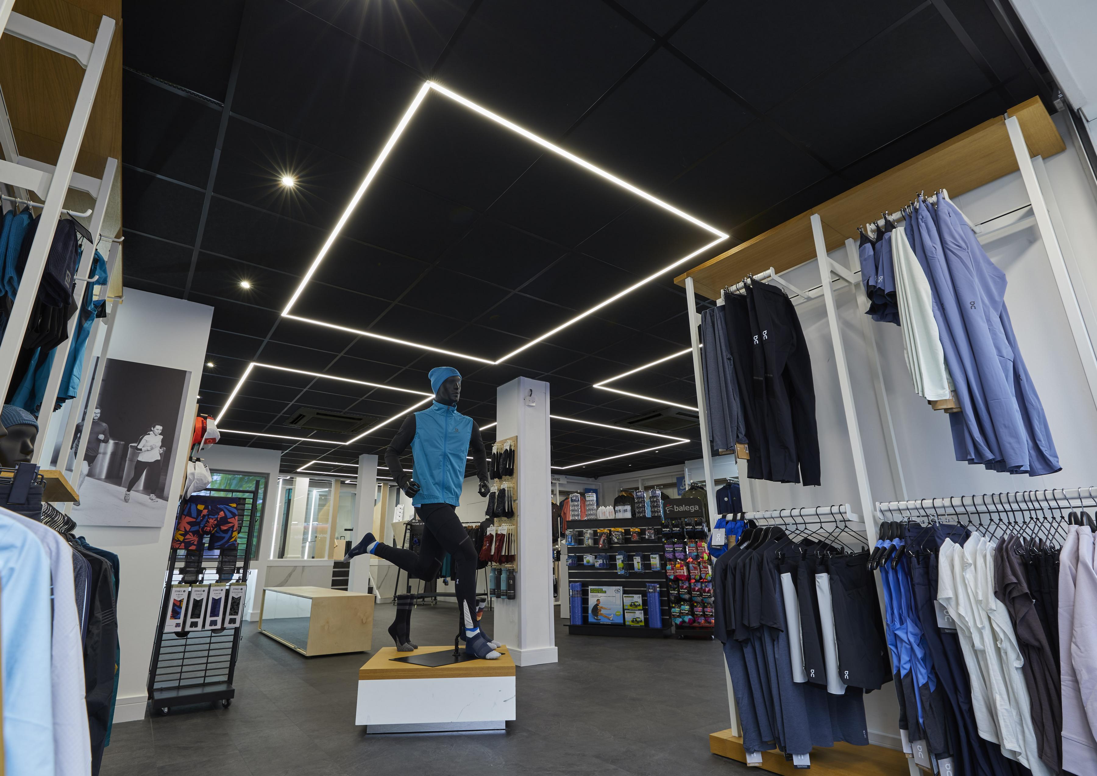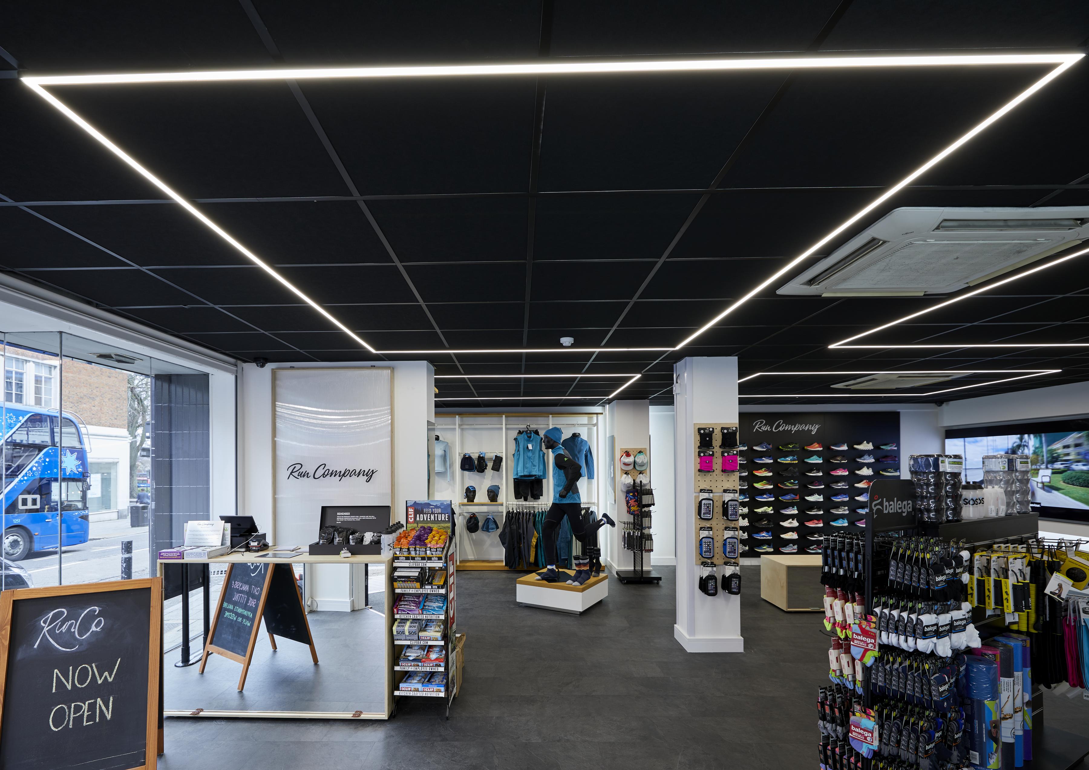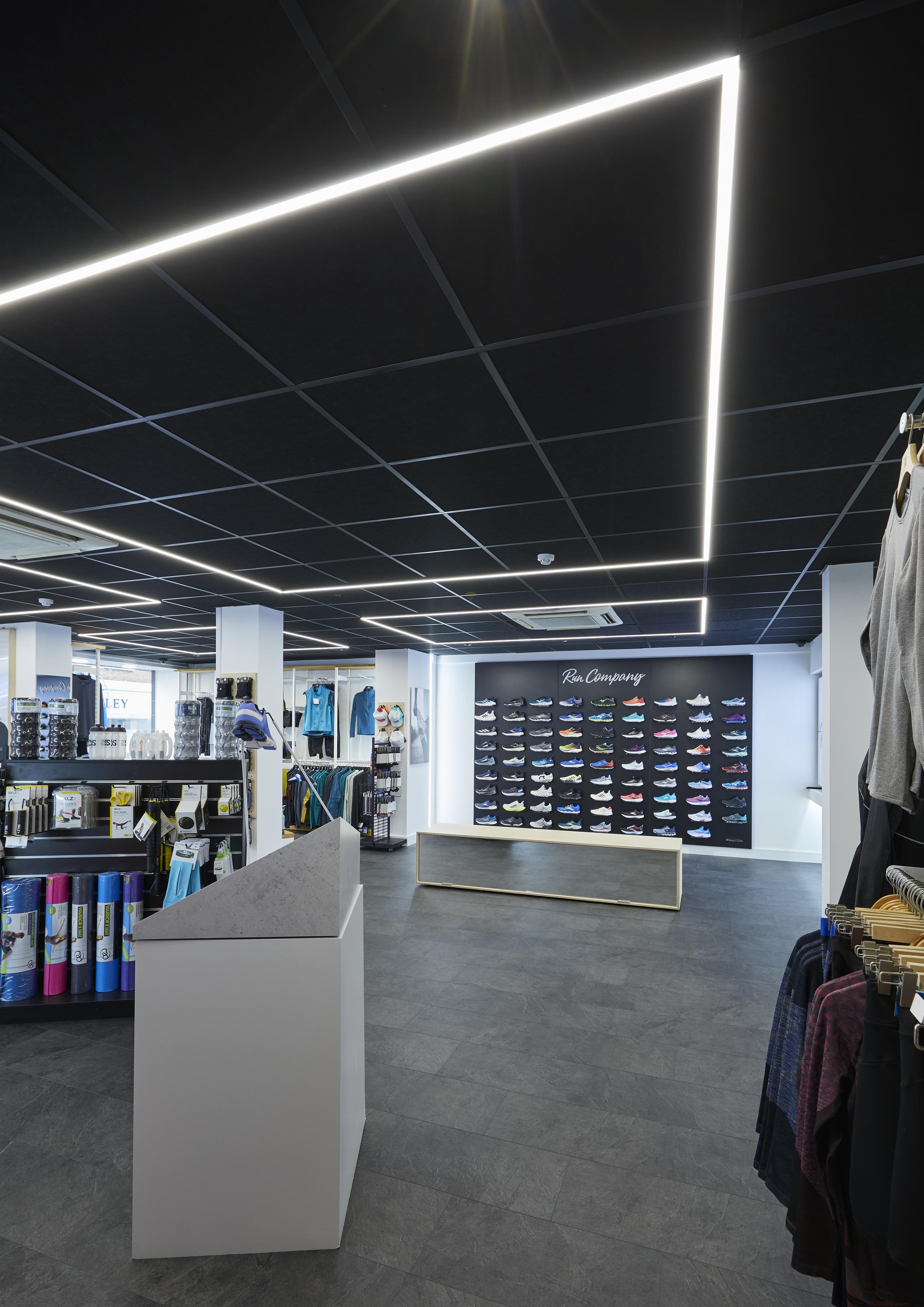 Run Company stattet 31 seiner Läden mit einem neuen, modernen Design aus. Zu diesem neuen Look gehört auch die beliebte schwarze Akustikdecke Ecophon Sombra. Run Company ist ein Laufspezialist, der sowohl im Laden als auch online einkauft. Das Unternehmen wurde in Chichester, West Sussex, gegründet und bedient heute Läufer im gesamten Süden. Run Company bietet fachkundige Beratung und eine Ganganalyse an, um sicherzustellen, dass alle Kunden mit den richtigen Schuhen für ihren Fußtyp laufen.