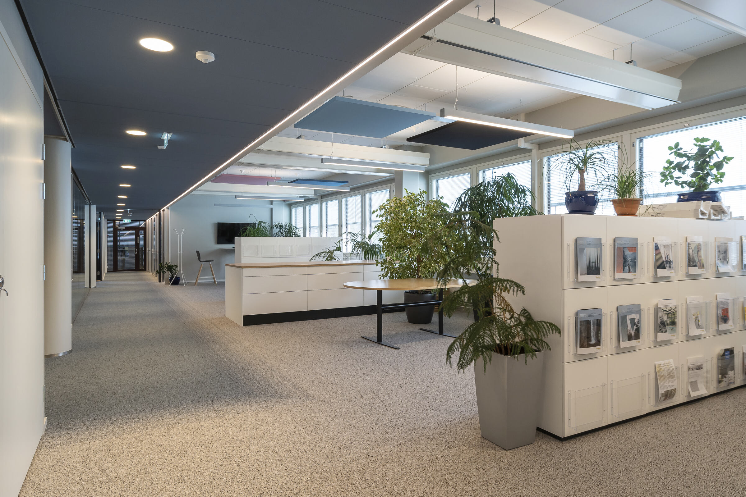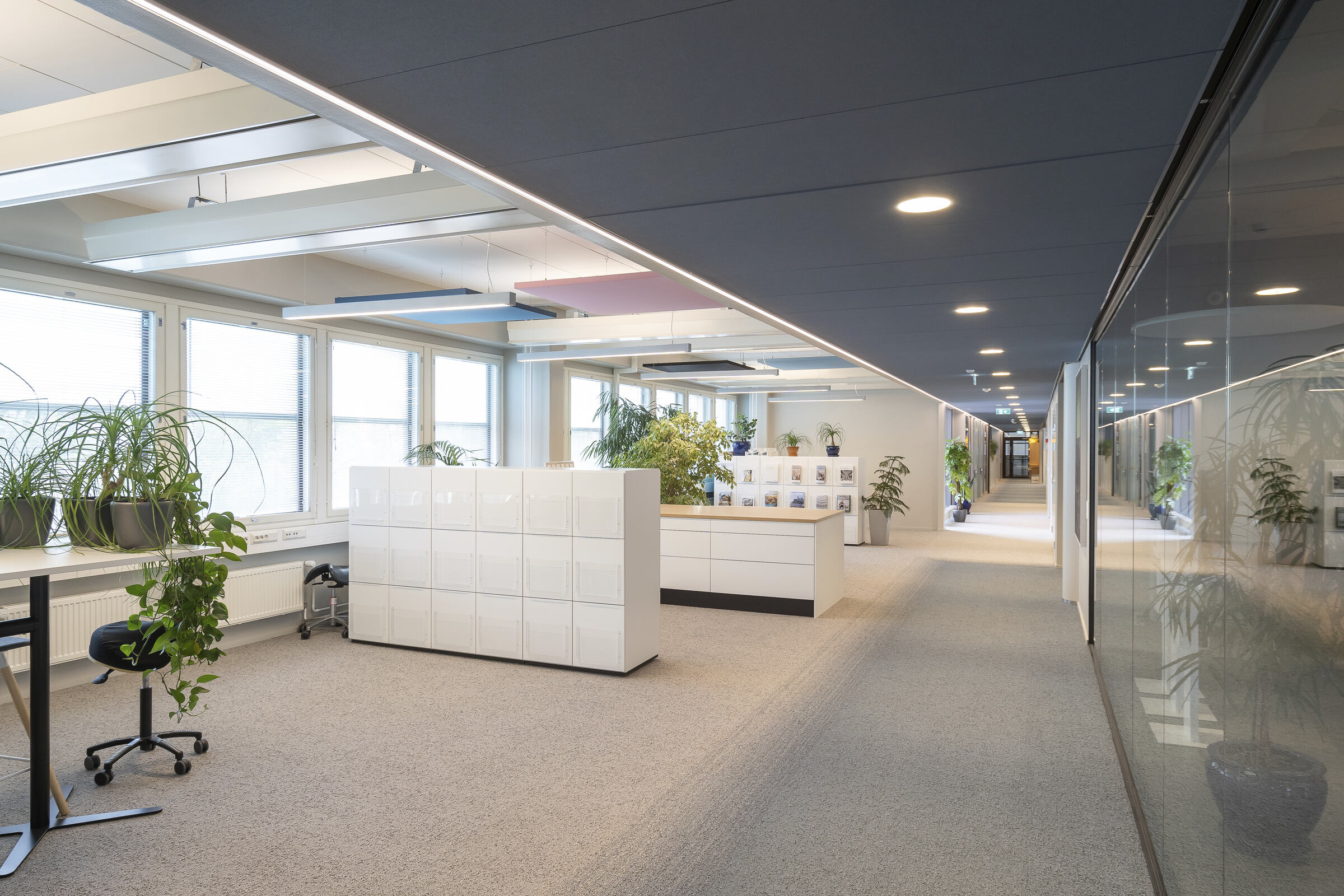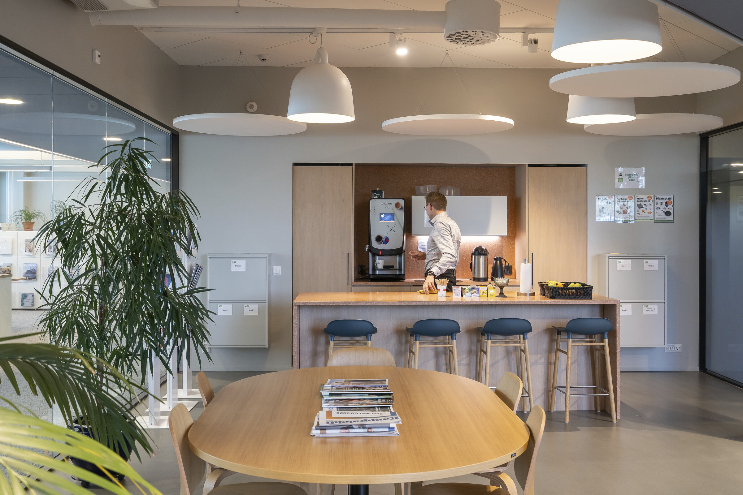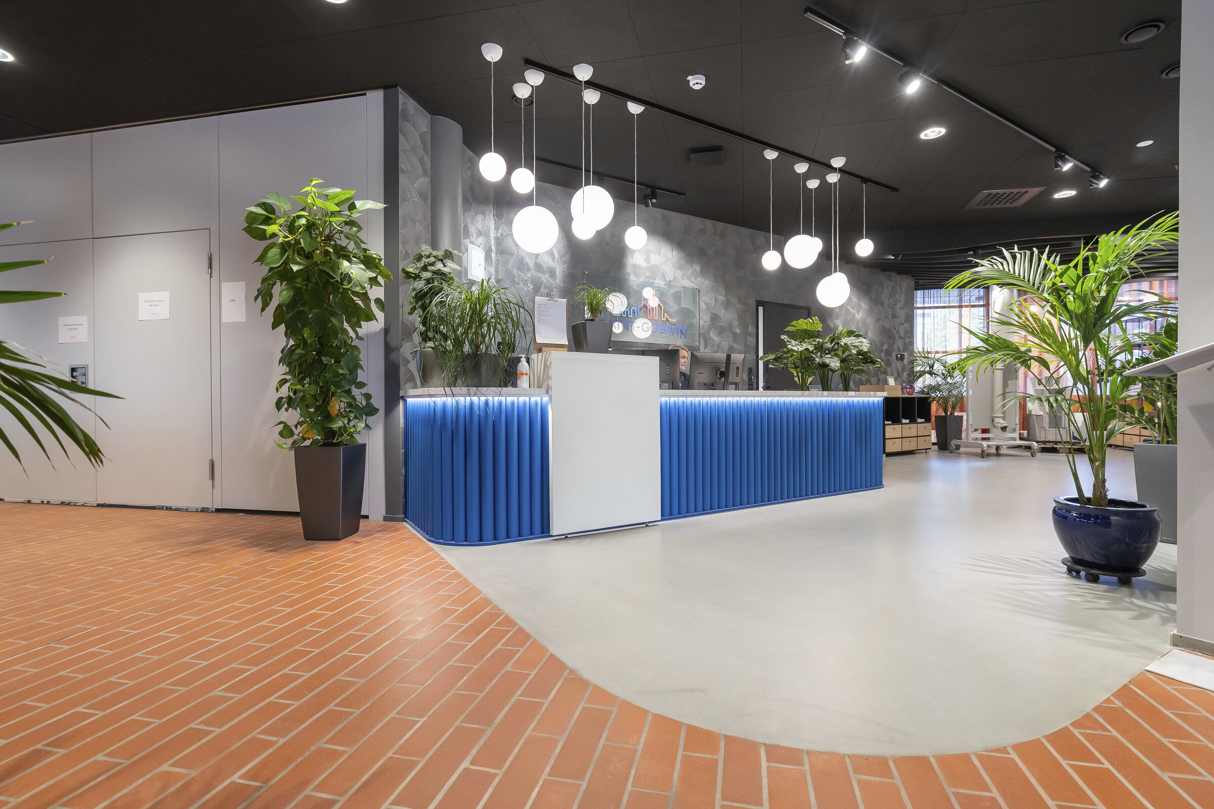 Bei der Renovierung der Hauptgeschäftsstelle von Saint-Gobain Finnland (2021-2022) wurden sowohl die Räumlichkeiten als auch die Arbeitskultur erneuert. Persönliche Büroräume und feste Arbeitsplätze gehörten der Vergangenheit an und machten Platz für ein aktivitätsorientiertes Büro mit vielen Räumen für die Zusammenarbeit und Pausenräumen zur Unterstützung flexibler Arbeitsweisen.