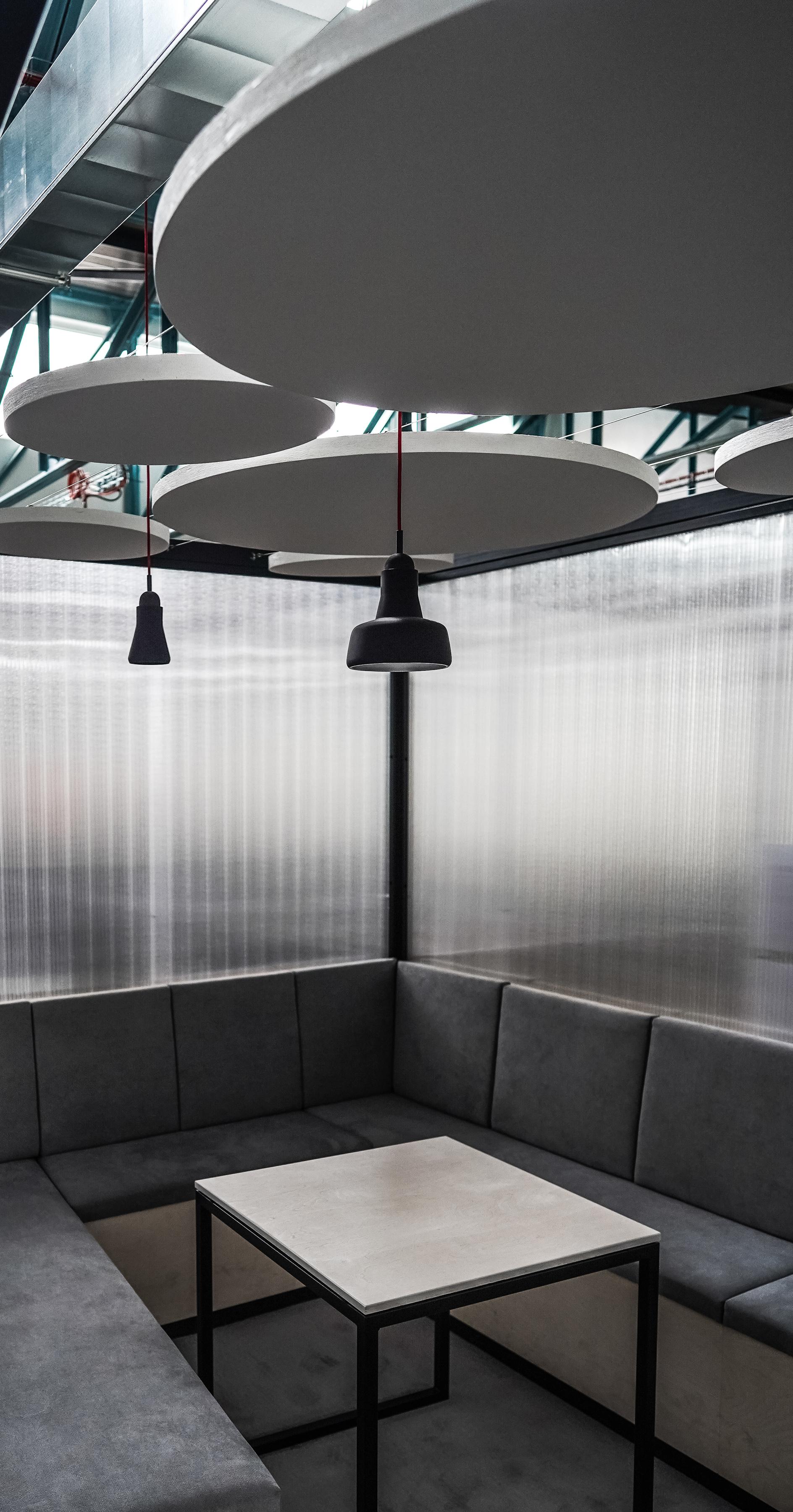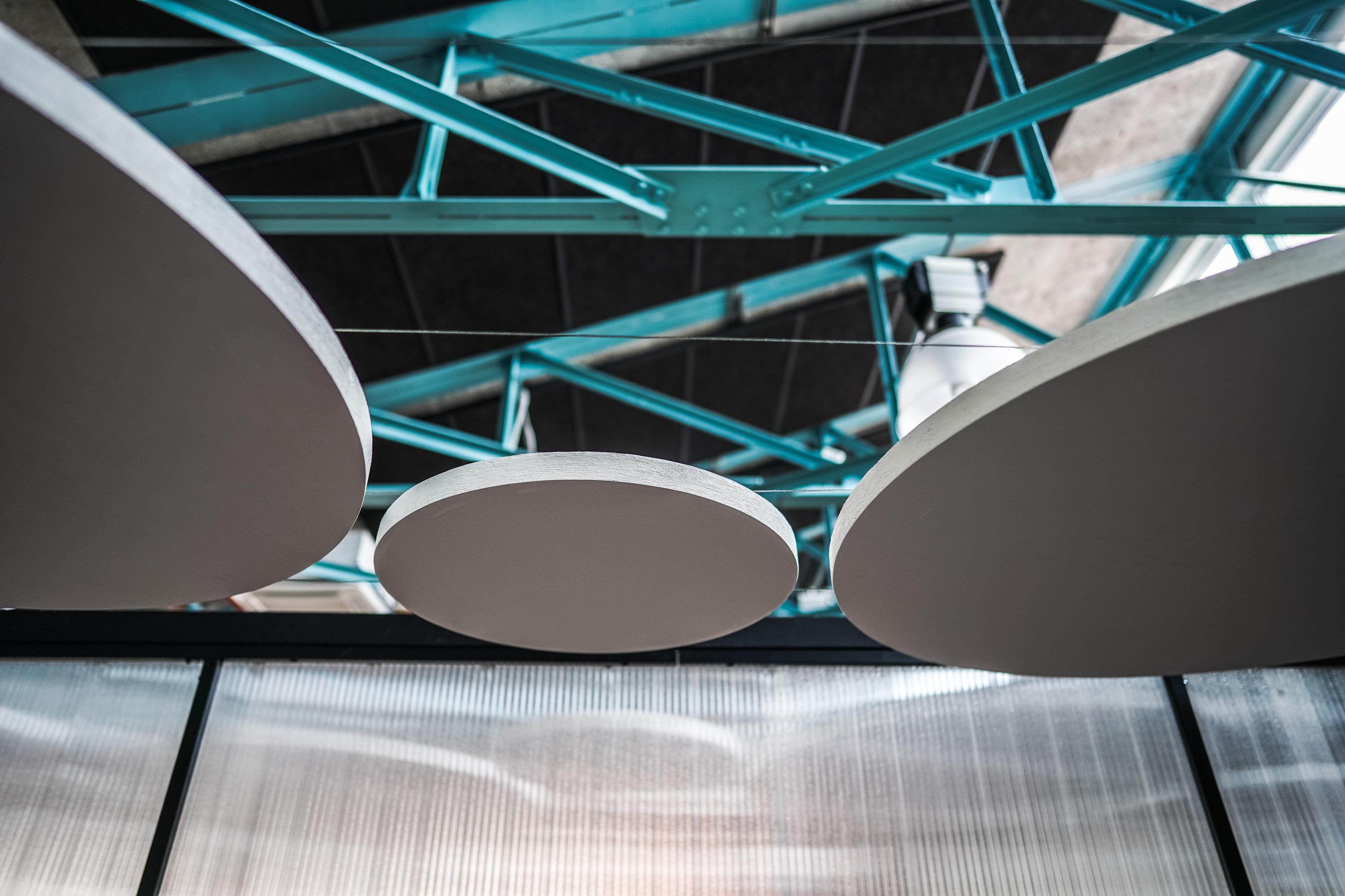 Eine moderne Büroumgebung kann nicht ohne eine hochwertige Akustiklösung auskommen. Aufgrund der Besonderheit des Raumes mit großen Oberlichtern war es notwendig, eine maßgeschneiderte Lösung zu finden.