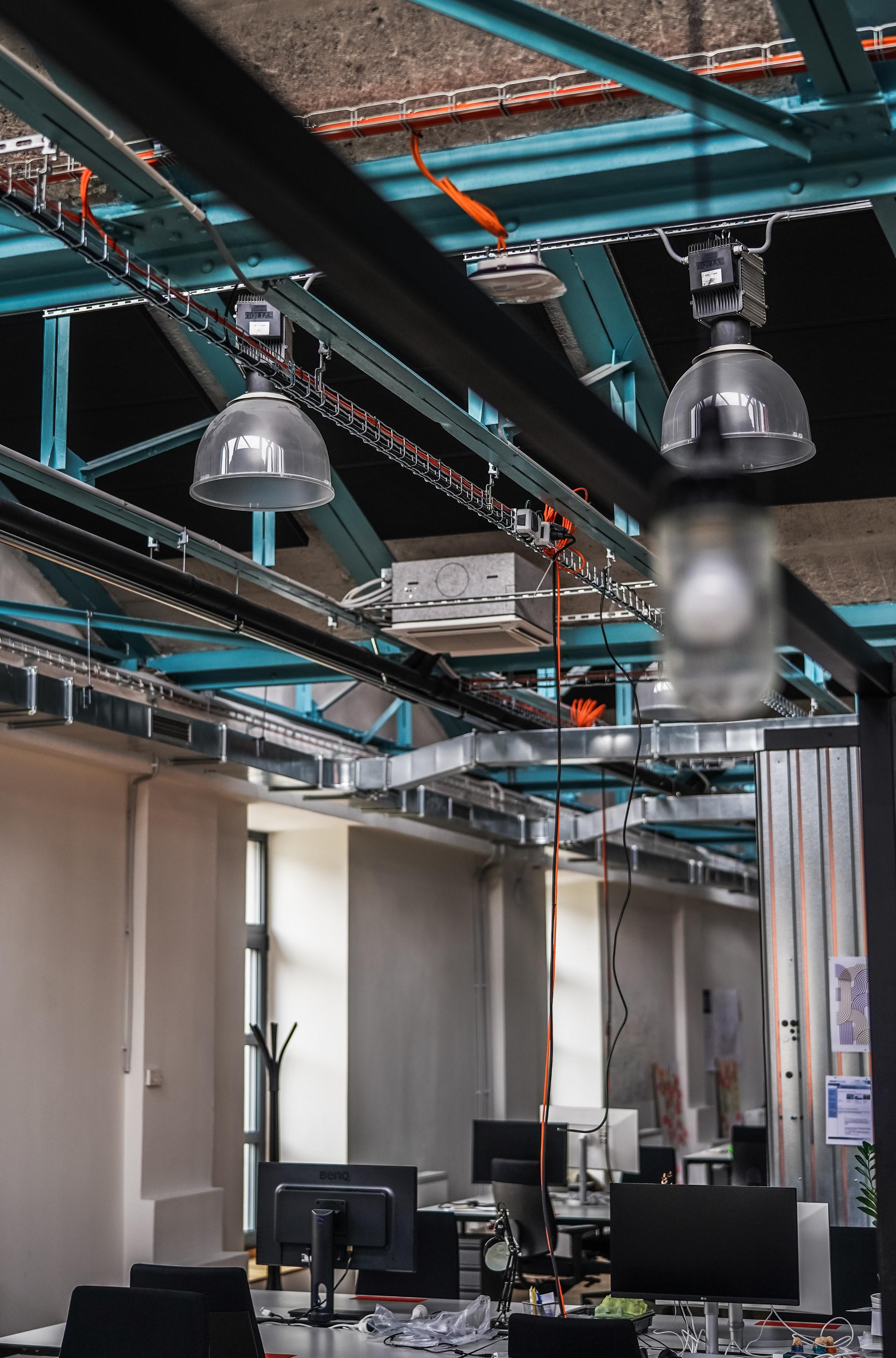 Es dauerte ein halbes Jahr, um einen Raum für 60 Mitarbeiter zu finden und zu schaffen, der ihre Kreativität unterstützt. Diese Räumlichkeiten wurden also gefunden - in einem alten Industriegebäude. Es war daher notwendig, die Ordnung und Konstruktion des Gebäudes, seinen industriellen Charakter mit allen Bausteinen, Rahmen und spezifischem Design zu berücksichtigen.