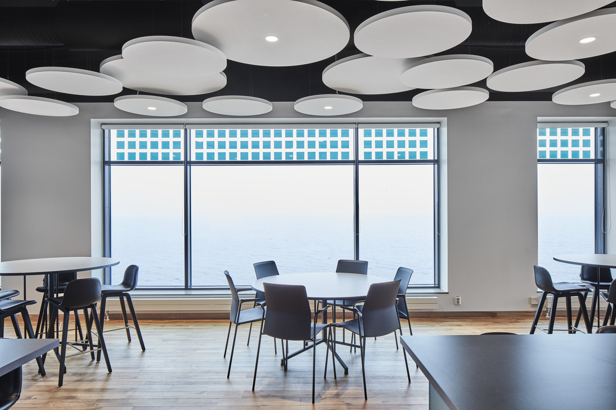 Nach fast sechsmonatiger Nutzung ist die gesamte Belegschaft sowohl mit der Akustik als auch mit den Räumlichkeiten sehr zufrieden. Auch die Ausstattung mit großzügigen Gemeinschaftsräumen und Freizeitbereichen wie modernen Umkleideräumen, einer Sauna und einem Fitnessraum für die gesamte Belegschaft mit Blick auf die Ostsee wird sehr geschätzt.