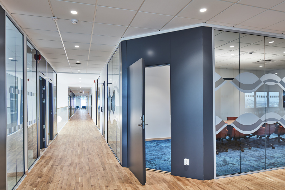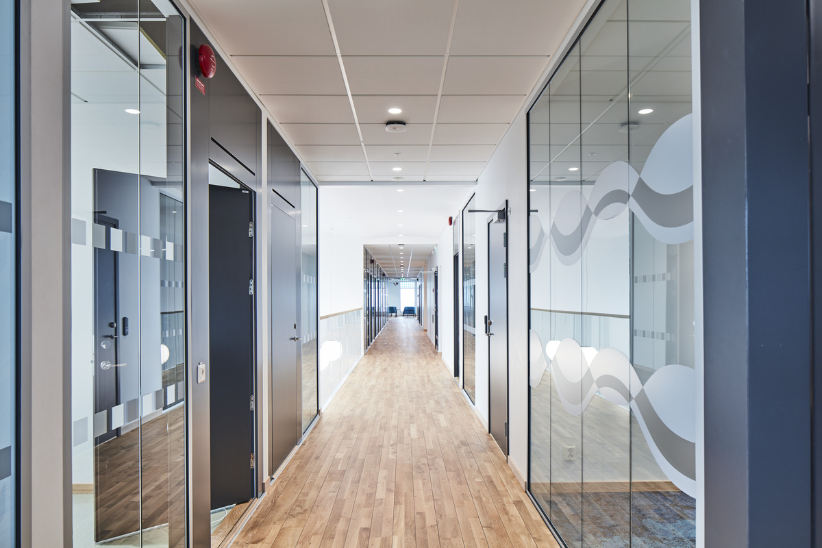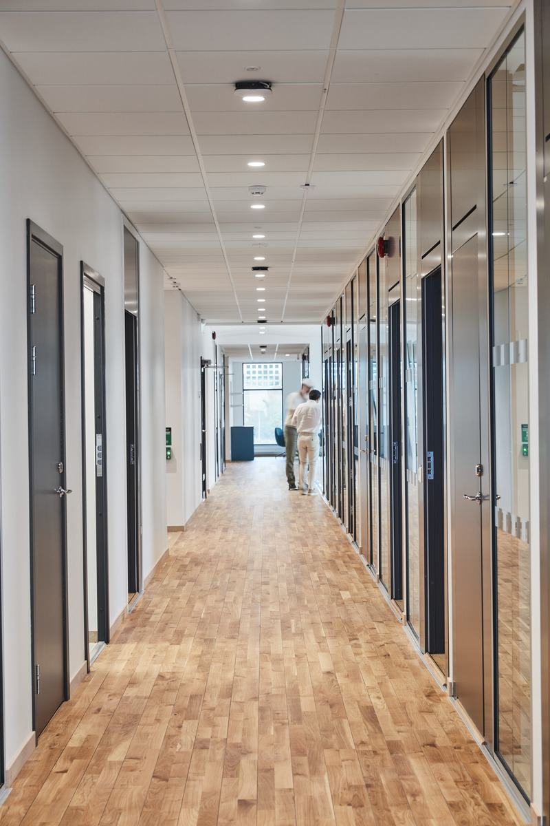 Das Gebäude wurde in Zusammenarbeit mit den Mitarbeitern gebaut, nachdem diese ihre Wünsche für die Räumlichkeiten geäußert hatten. Die Qualität der Materialien ist im gesamten Gebäude sehr hoch, und auf allen Etagen gibt es die gleiche ansprechende Verarbeitung. Die Beamt*innen sitzen im zweiten Stock und die Hafenmitarbeitenden haben ihre Räume im ersten Stock.