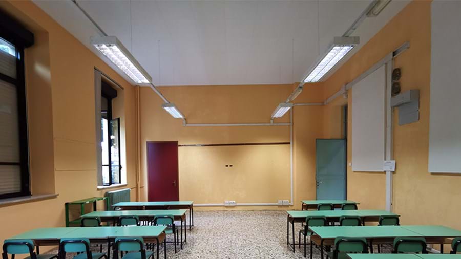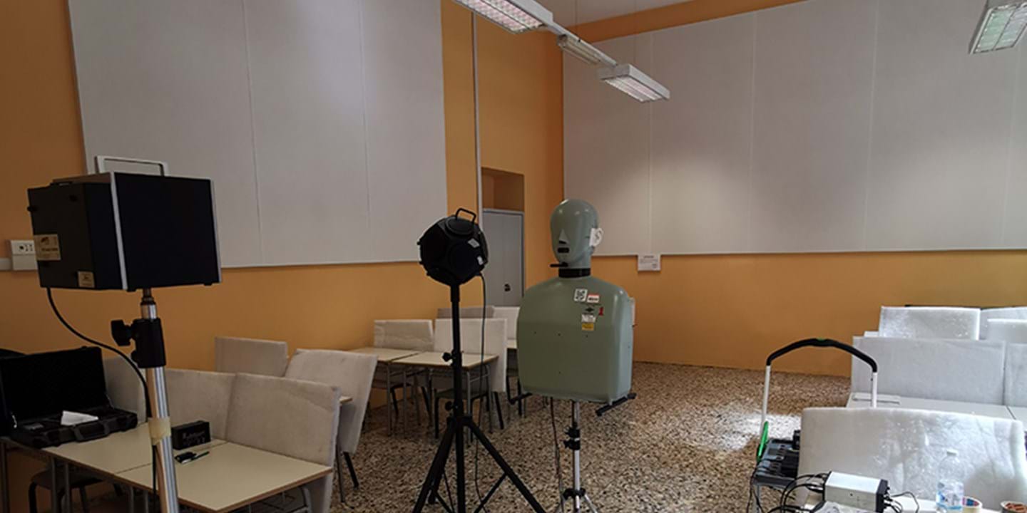 Für das Projekt nutzten die Forscherinnen zwei Klassenzimmer, die in jeder Hinsicht ähnlich waren: in Bezug auf Materialien, Abmessungen und Deckenhöhe. Sowohl die Decke als auch die Wände der beiden Klassenzimmer wurden mit Schallabsorbern versehen, die der neuen italienischen Norm für die akustische Umgebung in Schulen, UNI 11532-2:2020, entsprechen, die Anfang 2020 veröffentlicht wurde.