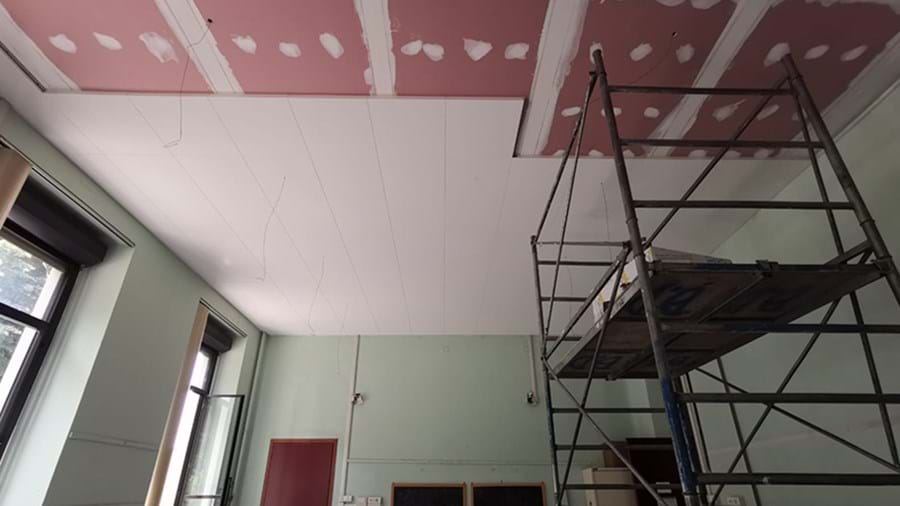 In zwei Klassenzimmern der Schule Muratori wurden Akustikdecken und Wandpaneele montiert.