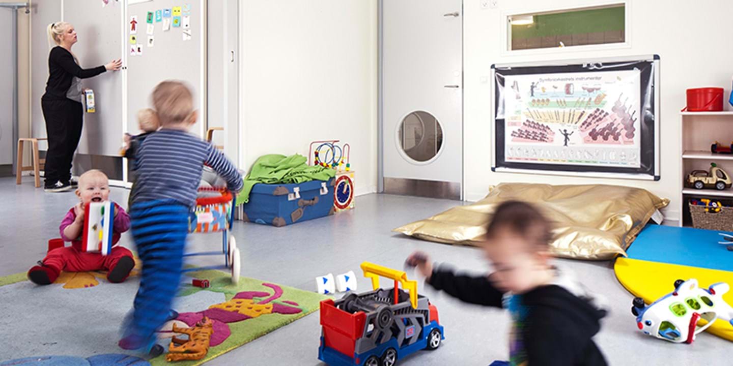 Schwedische Vorschulen werden als spielerische Lernumgebung betrachtet, in der das Spielen die Grundlage für Lernen und Entwicklung bildet. Das bedeutet, dass viele Geräusche entstehen und die akustischen Bedingungen kontrolliert werden müssen. Folglich muss die physische Gestaltung von Vorschulräumen bestimmten Anforderungen genügen.