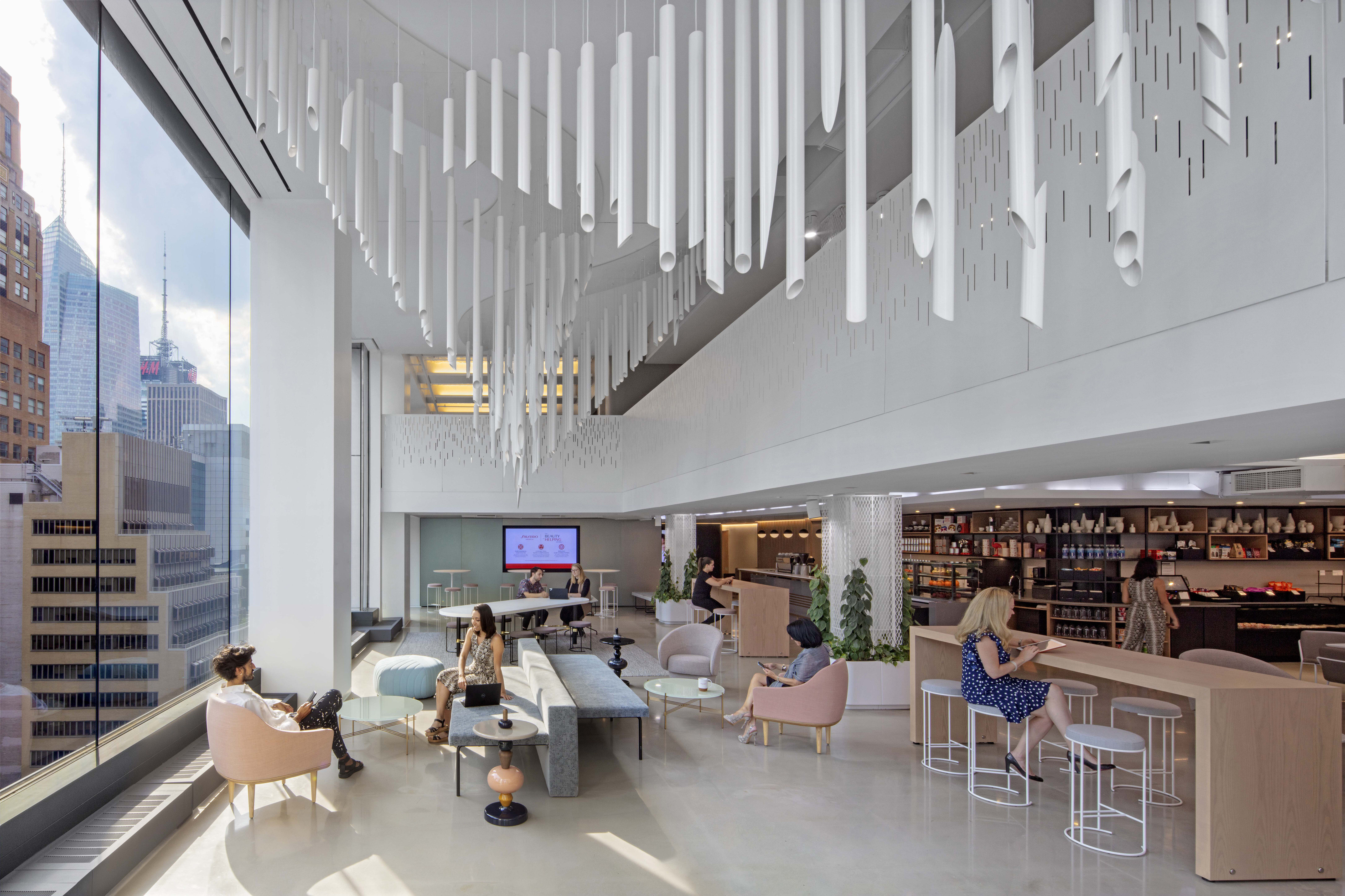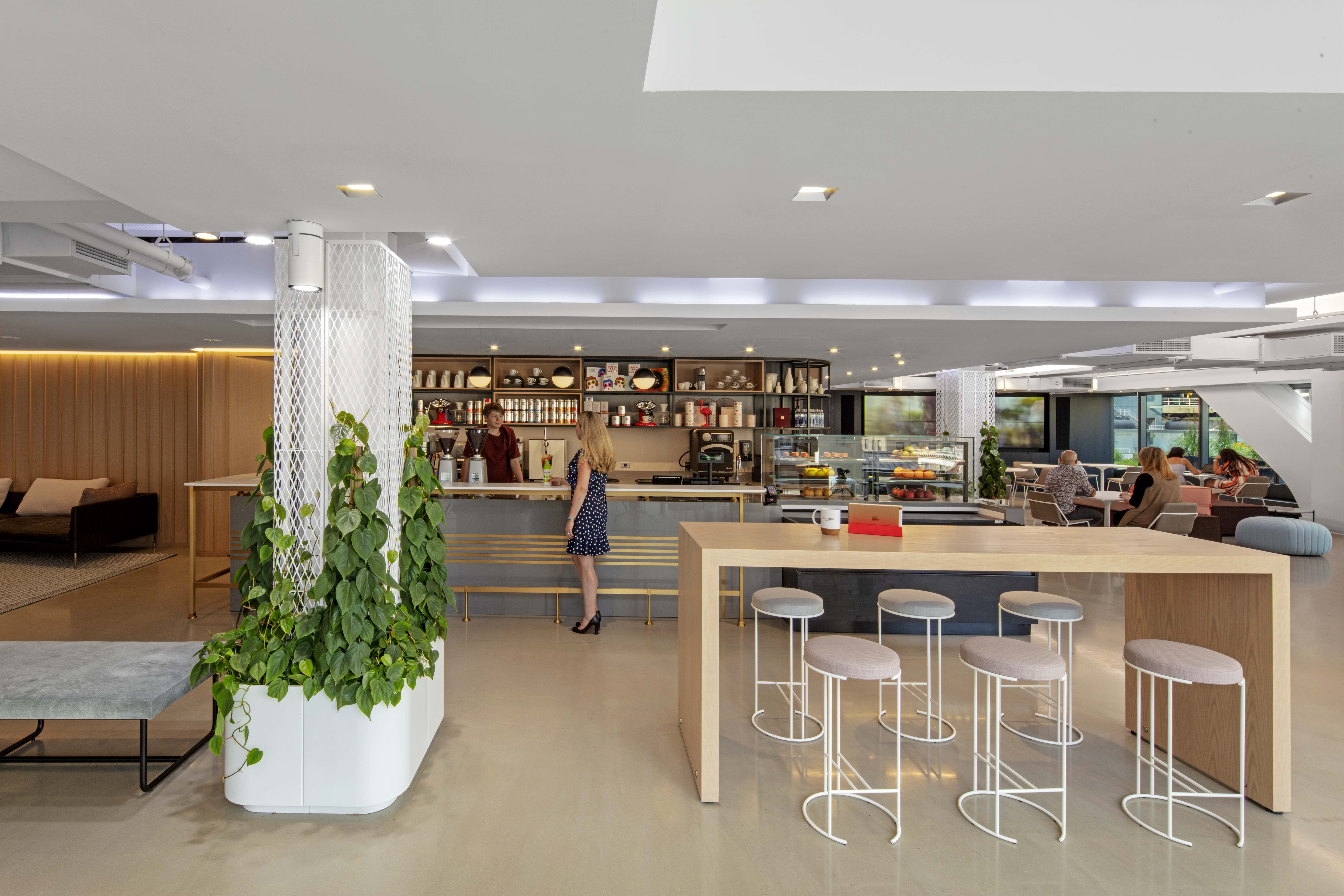 "Nicht alle Räume sollten den gleichen Geräuschpegel haben. Man sollte ruhigere Zonen anbieten, die konzentriertes, fokussiertes Arbeiten unterstützen, Zonen mit allgemeinen Hintergrundgeräuschen, in denen man Gespräche führen kann, ohne seine Nachbar:innen zu stören, und soziale Zonen mit noch mehr Trubel. Und wir müssen sicherstellen, dass es Zonen ohne künstliches Rauschen gibt, da es bei etwa 10 % der Bevölkerung Kopfschmerzen verursachen kann. Insgesamt sollten wir unterschiedliche Beleuchtungs-, Energie- und Akustikniveaus anstreben, um den verschiedenen Aktivitätsniveaus und persönlichen Vorlieben gerecht zu werden."
