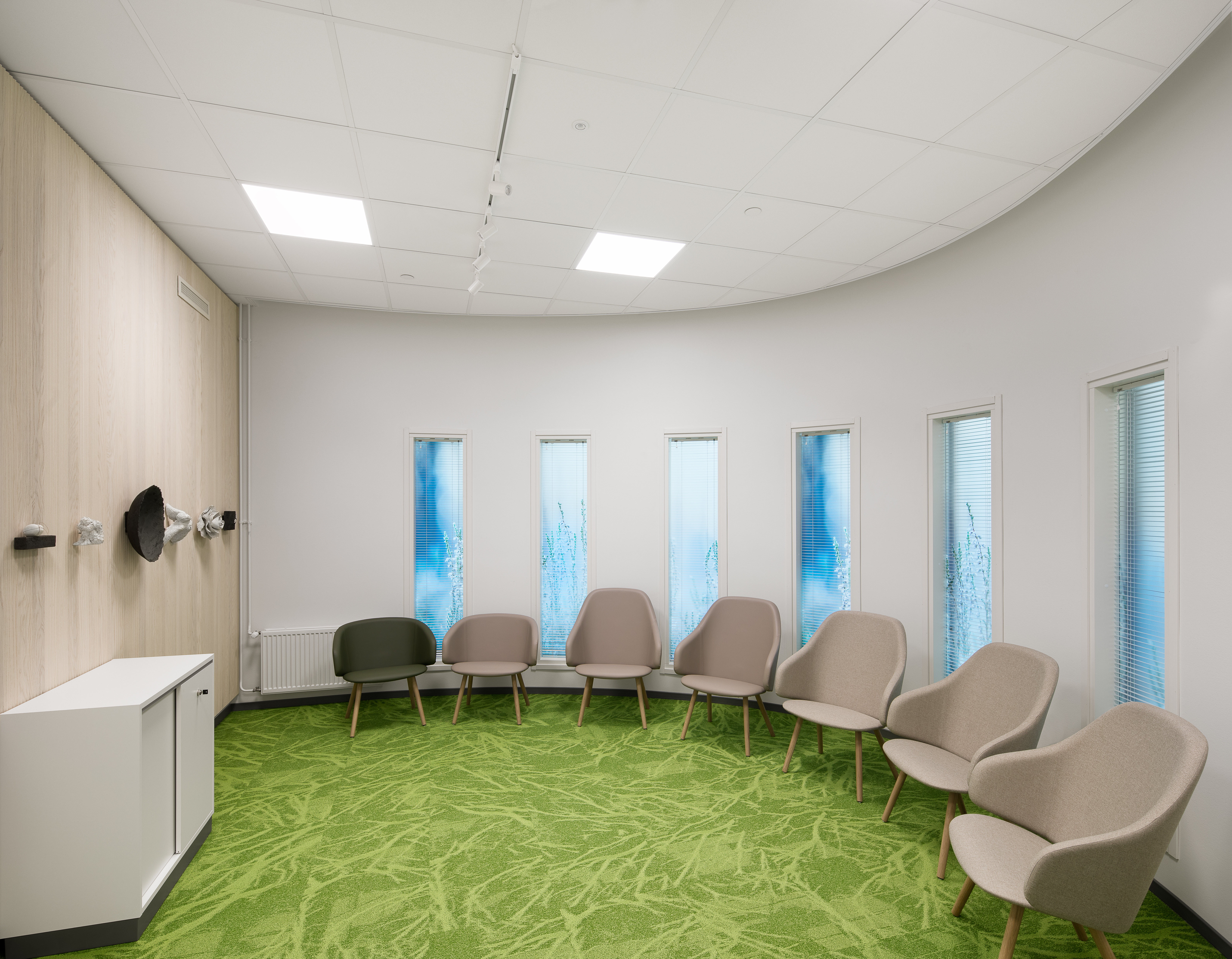 "Einzelzimmer für Patienten, ein Blick aus den Fenstern auf den See, viel natürliches Licht, eine Beleuchtung, die den natürlichen Tagesrhythmus nachahmt, eine gute Akustik und von der Natur inspirierte Themen unterstützen nachweislich die psychische Genesung. Die Berücksichtigung der Familie und des weiteren Umfeldes in den Räumlichkeiten fördert auch das Gefühl von Sicherheit und Geborgenheit. So können beispielsweise enge Freunde oder Verwandte auf den Stationen im Gebäude M übernachten. Wir haben versucht, einen umfassenden Ansatz für das Wohlbefinden der Menschen zu wählen, der weit über die medizinische Behandlung hinausgeht", erklärt die Designkoordinatorin des Projekts, Marja Koivumäki vom Hospital District of South Ostrobothnia.