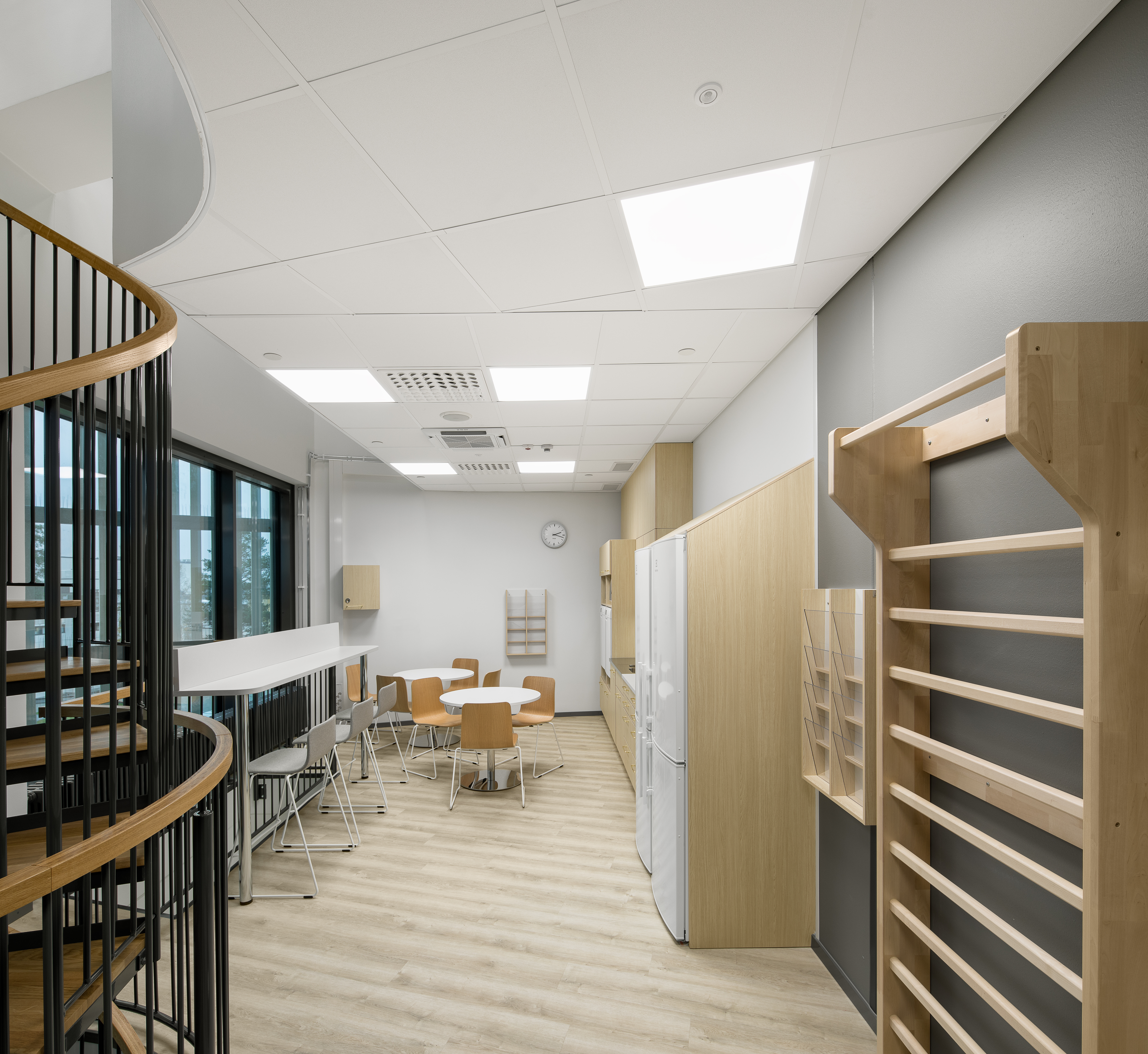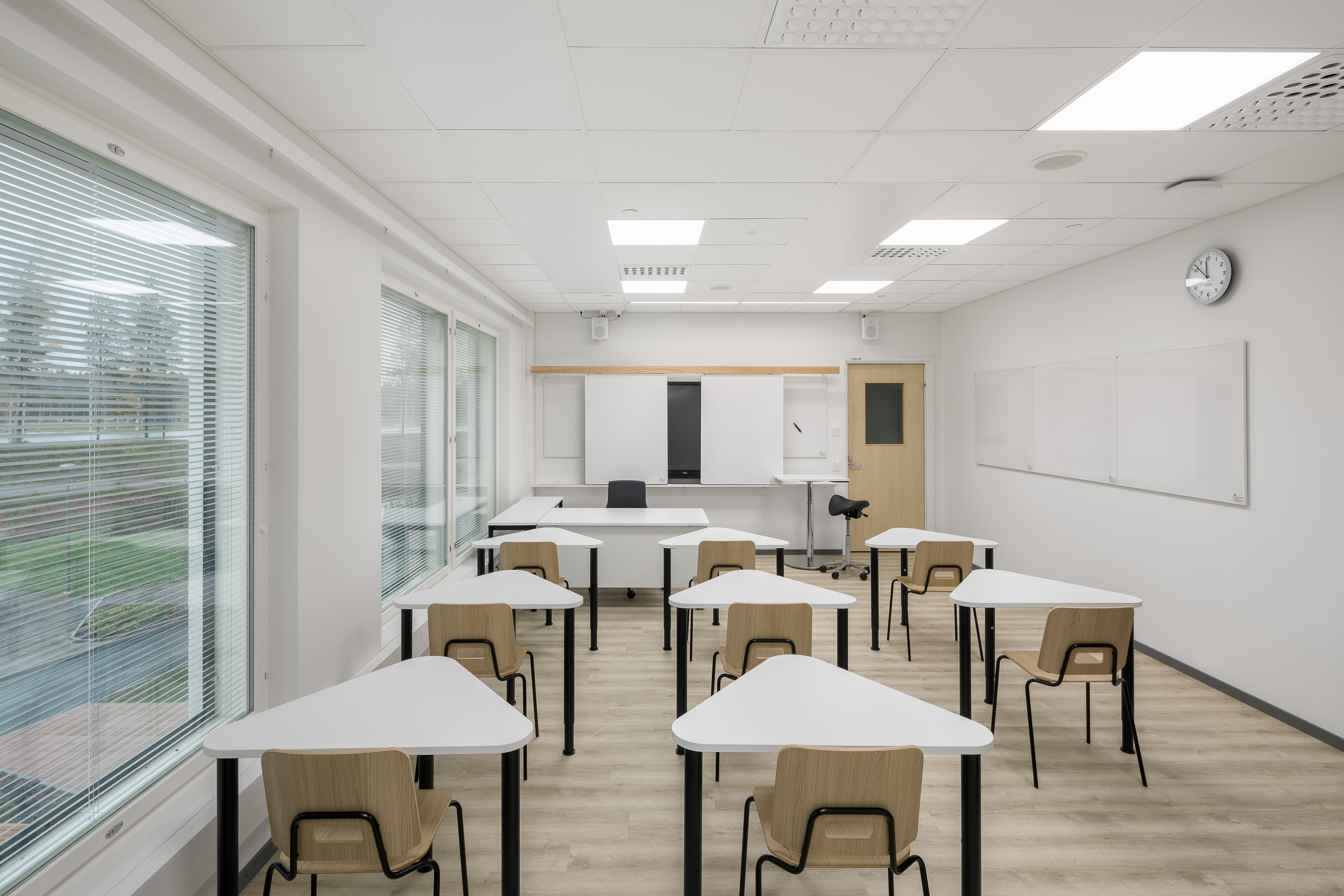 Eine gute akustische Umgebung fördert nachweislich die Konzentration. Das Klassenzimmer der Ruutipuisto Hospital School hat eine abgehängte Akustikdecke.