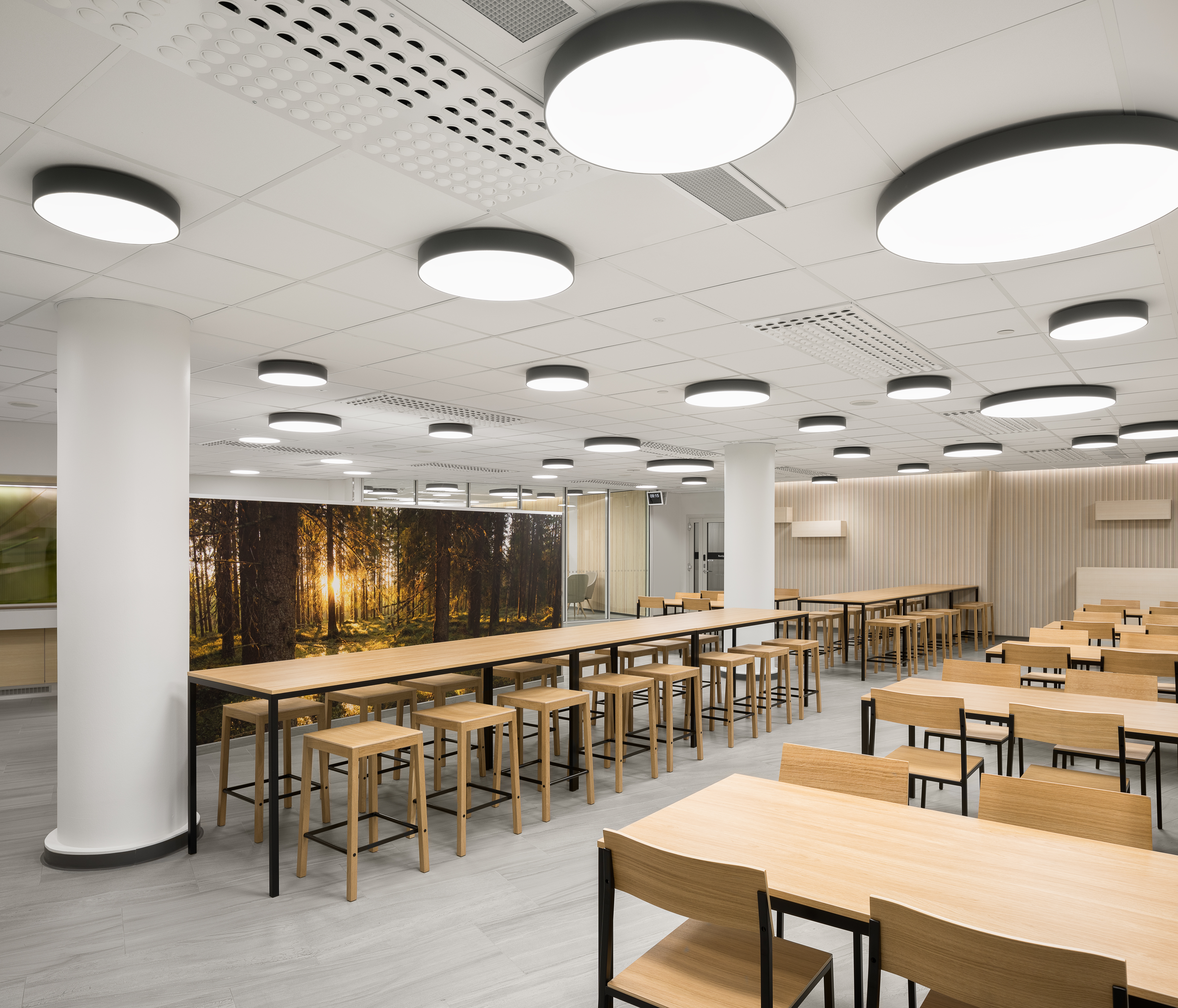 Ecophon Focus™ A abgehängte Deckenpaneele schaffen eine angenehme Raumakustik.