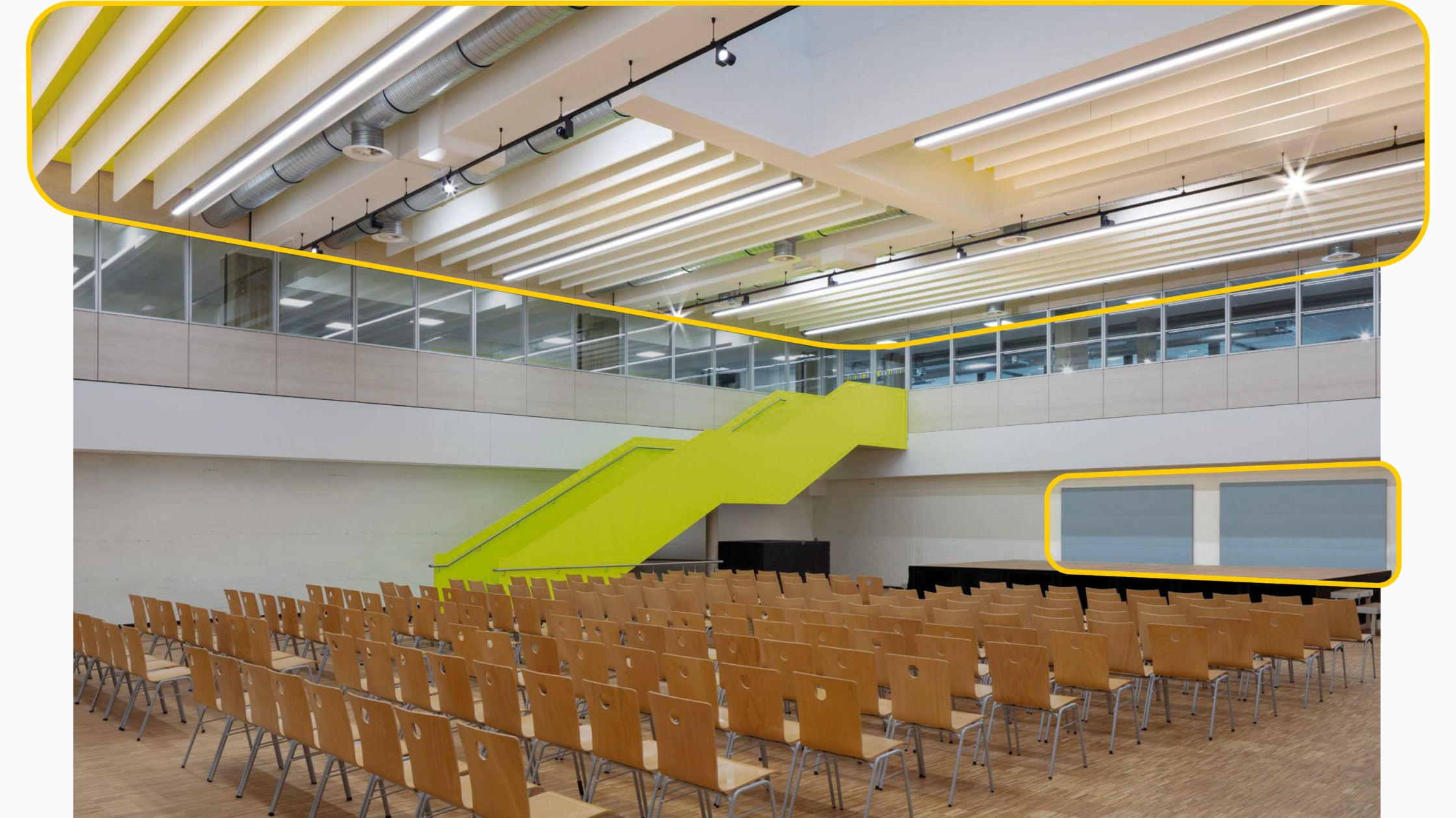 • Baffelsystem mit horizontal montierten Hochleistungsabsorbern