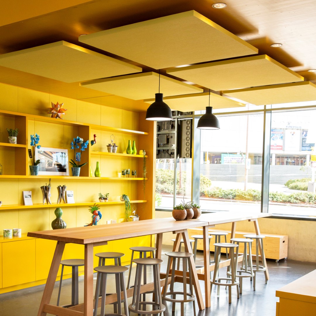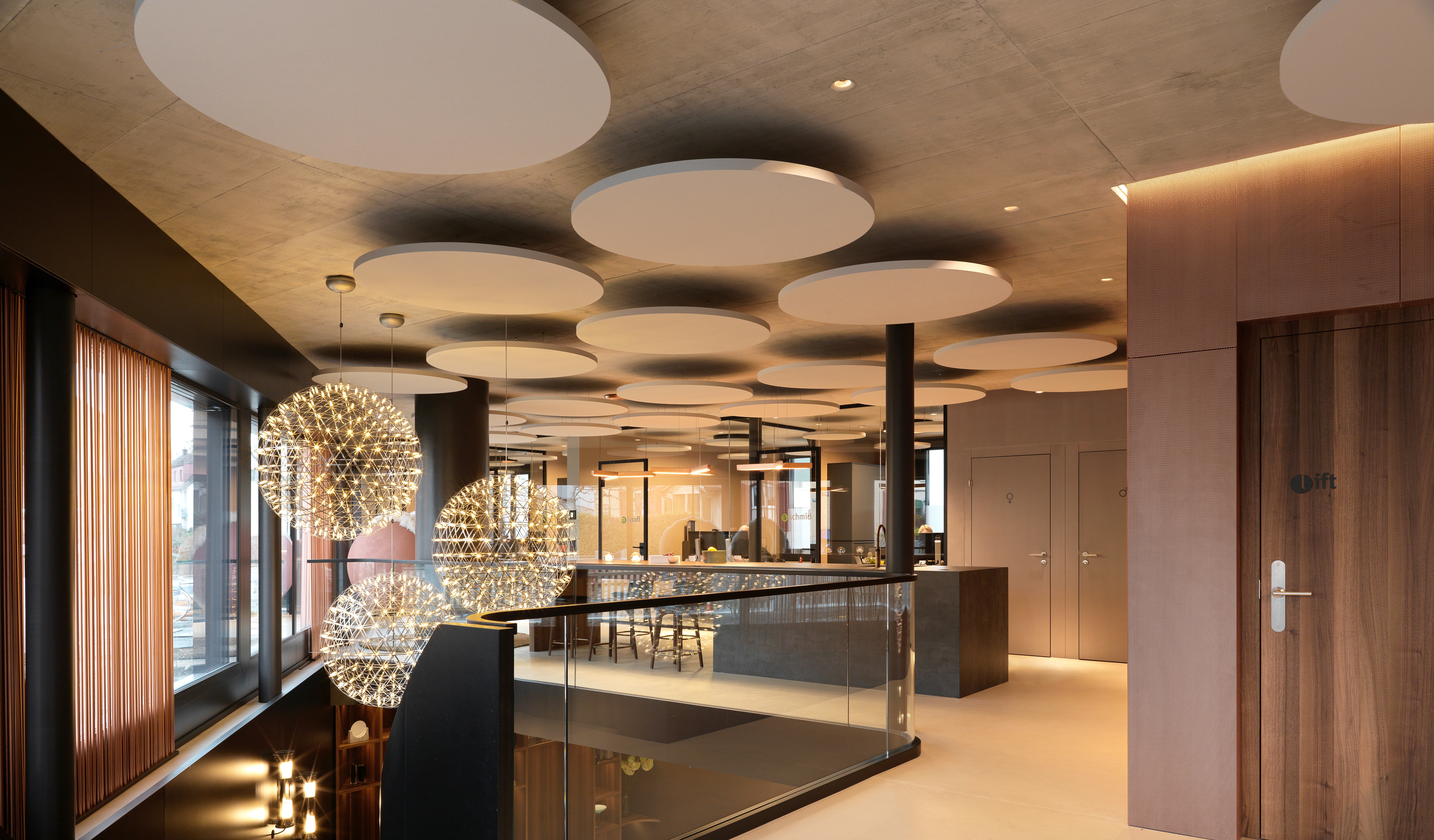 Wandabsorber sind die perfekte Ergänzung zu einer Akustikdecke. Sie reduzieren Echos von den Wänden, verhindern unnötige Schallreflexionen und verbessern die Sprachverständlichkeit.