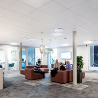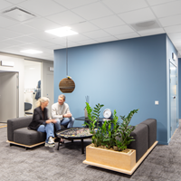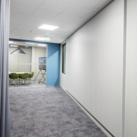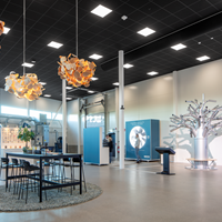Bygningen er designet til at fremme både produktivitet og trivsel, og Ecophon akustikløsninger er integreret overalt – fra kontorer og produktionsområder til udstillingsmiljøer. Akustisk ydeevne var en prioritet fra starten og skaber et miljø, der støtter koncentration, effektivitet og komfort. Denne dedikation til god lyddesign spiller en vigtig rolle i at styrke den sociale bæredygtighed.