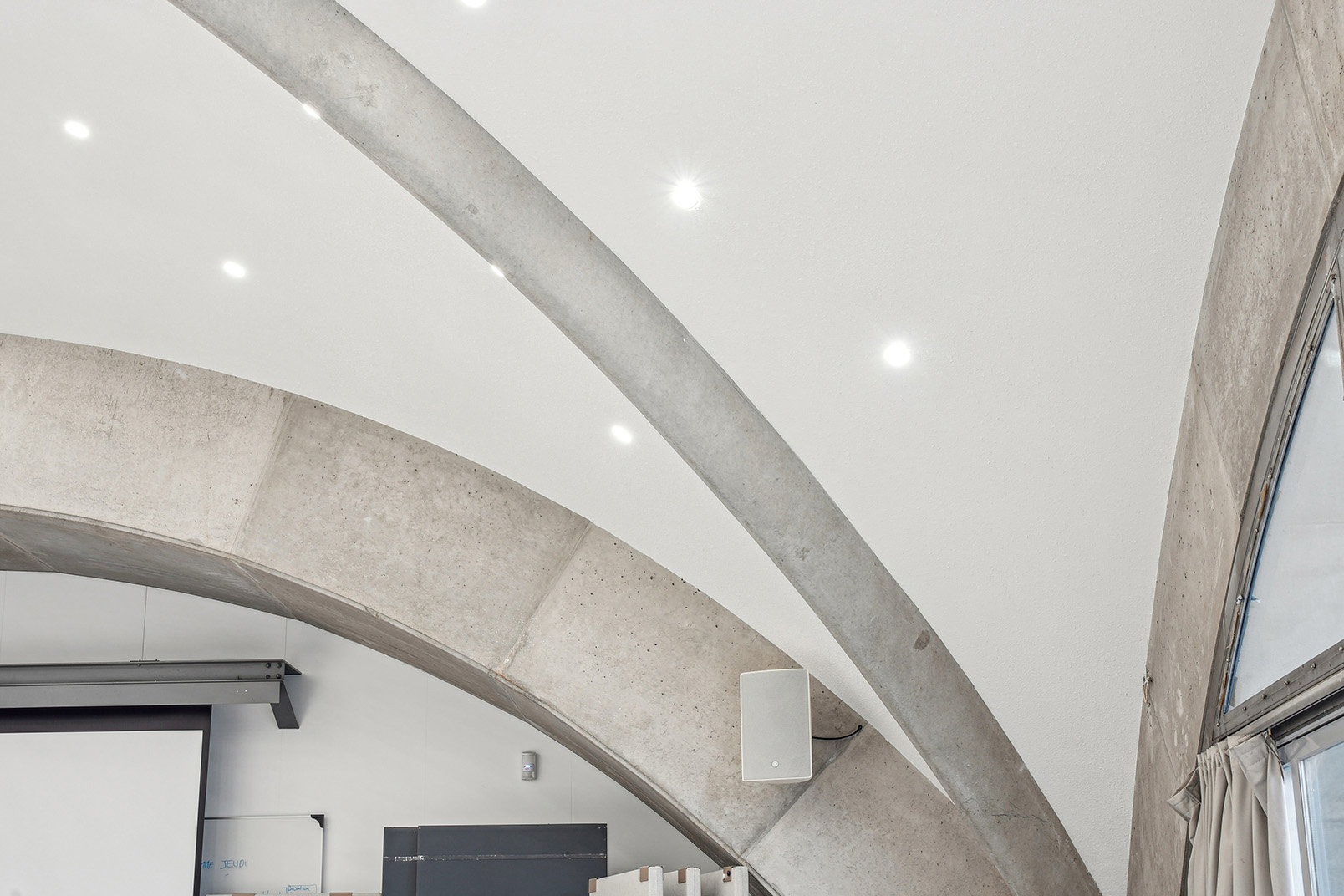 The project brought together a wide range of contributors: architects, installers, acousticians, students and teachers. The Ecophon Fade™ acoustic plaster solution was chosen for the ceiling, providing a seamless finish that respected the architecture while dramatically improving sound conditions. Measurements showed that reverberation time was reduced from 1.9 seconds to just 0.6 seconds – a transformation that makes the classroom calmer, clearer and far more conducive to learning.