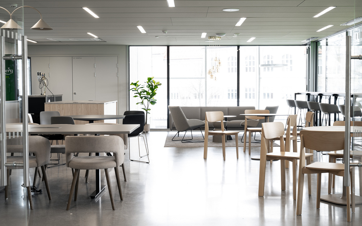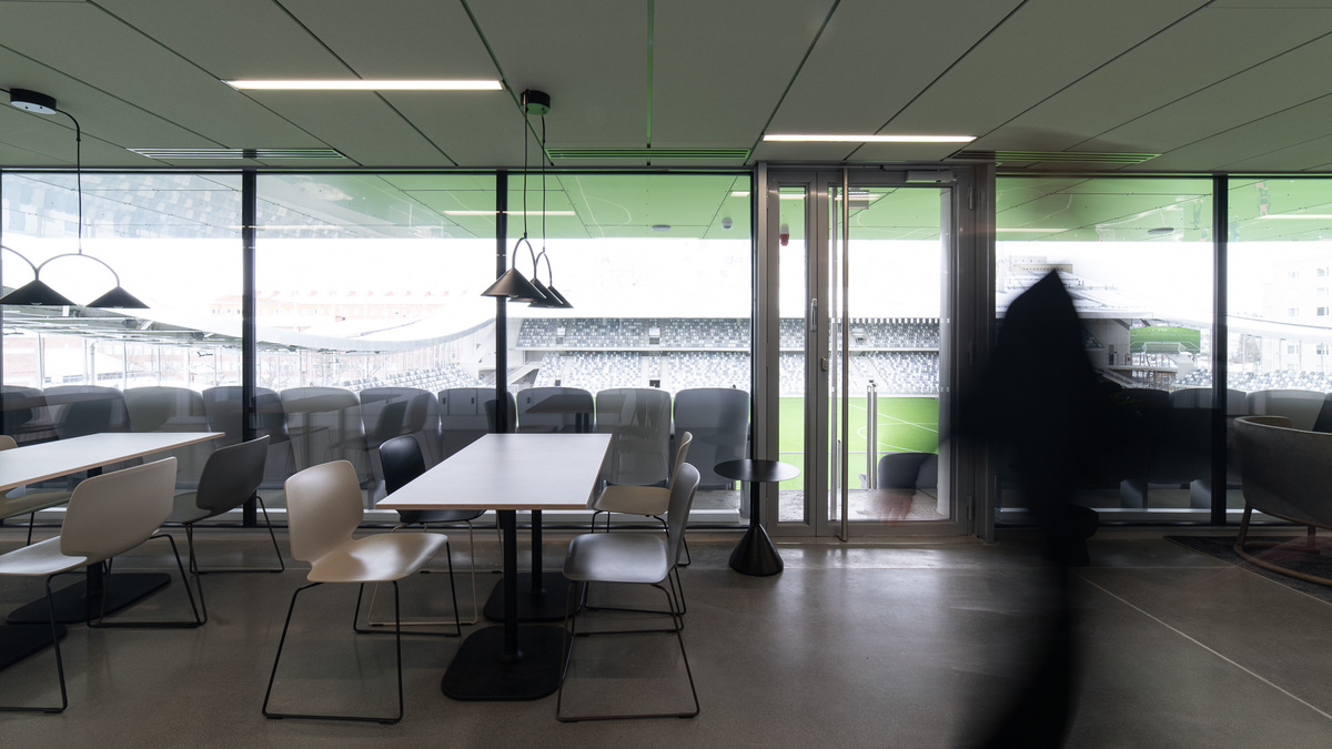 The ceiling solution in the stadium's changing rooms, restaurants, offices and meeting rooms are mainly Ecophon Focus™ Lp and Lp XL acoustic panels, which effectively reduce noise and echo indoors. The semi-concealed grid system that highlights direction and standard colour Volcanic ash compliment the modern, Scandinavian architecture of the stadium.
