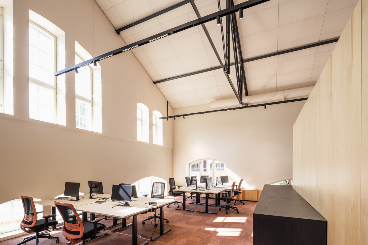 The project highlights how historic industrial buildings can be revitalised for modern use – preserving their identity while creating functional, acoustically comfortable environments.