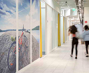 Ecophon Akusto™ is a complement to acoustic ceilings, that solves acoustic challenges and allows opportunities to follow current design and installation trends. The panel surface is available in Texona, Super G, Akutex FT and Akutex HS. The panel back is covered with glass tissue.