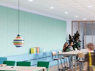 Ecophon Texona y Ecophon Clipso están disponibles en diferentes colores. Ecophon Sombra está disponible solamente en negro, y el resto en blanco.