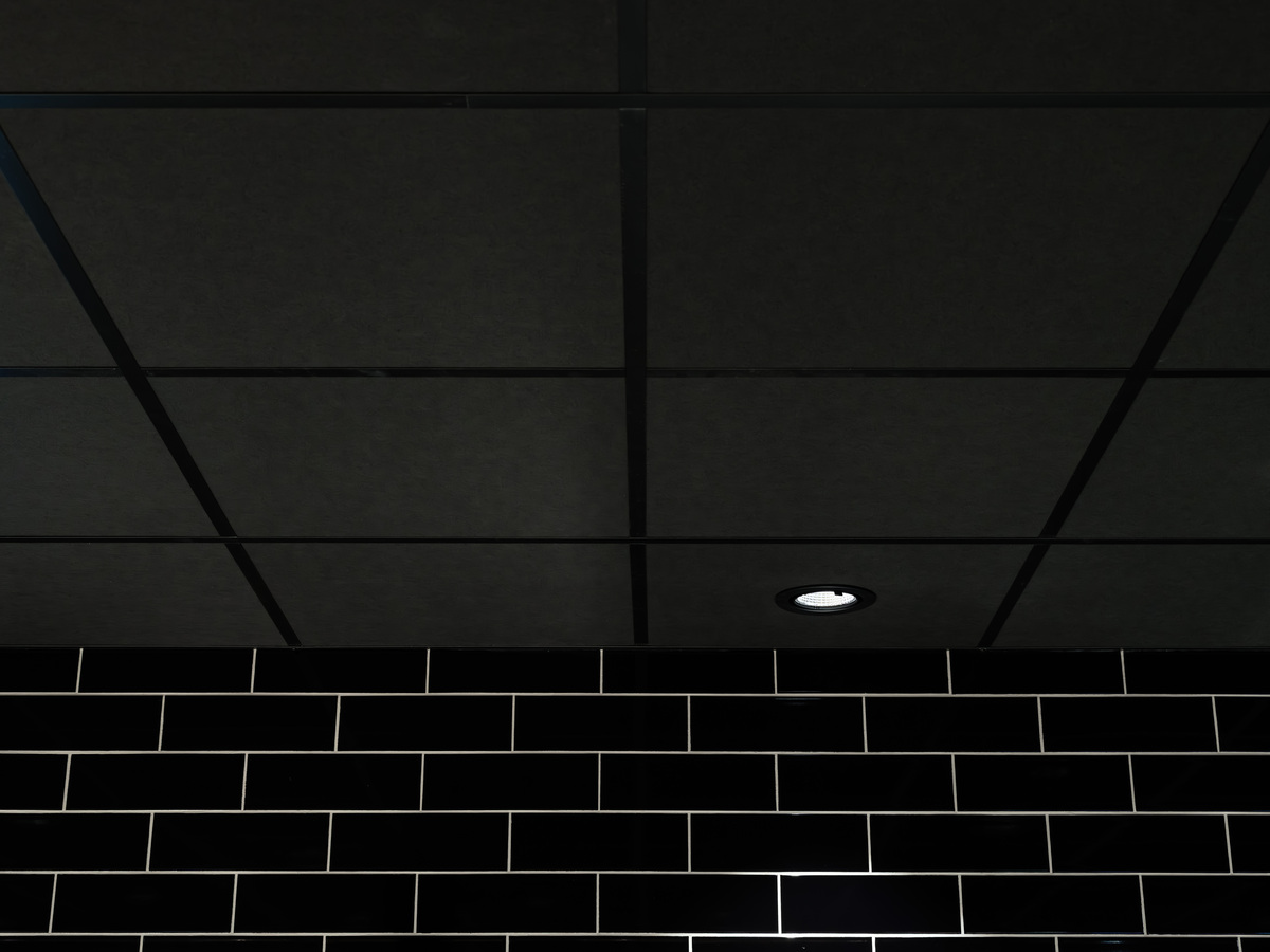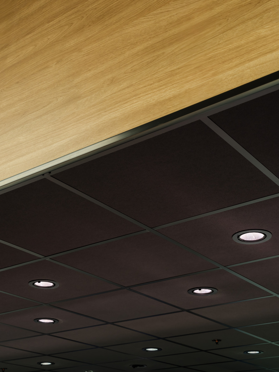 Se instaló Ecophon Hygiene™ Black sobre el mostrador de atención al público, lo que proporcionó una solución de techo que combina una excelente absorción acústica con estrictas normas de higiene y un sofisticado acabado en negro mate. Fácil de limpiar y resistente a la humedad, es ideal para entornos minoristas exigentes en los que tanto la acústica como la limpieza son esenciales.