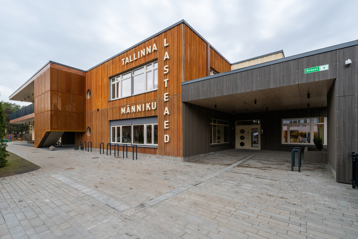 En 2023, la escuela infantil Männiku sufrió una transformación completa. El edificio obsoleto fue demolido y sustituido por una moderna instalación de dos plantas y alta eficiencia energética, diseñada para favorecer tanto el aprendizaje como el bienestar. La nueva escuela infantil ofrece ahora 10 salas para grupos de 224 niños, complementadas con dos amplios salones, aulas para cocina y robótica, un jardín de invierno, acogedores rincones de lectura y diversas zonas de juego al aire libre.