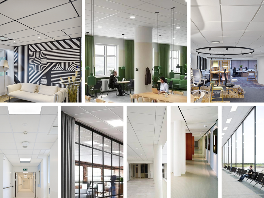 En investissant dans des solutions telles que les plafonds modulaires, les dalles de plafonds, les ilots, les baffles ou encore les panneaux muraux comme celles proposées par Ecophon, nous créons un monde où le son est maitrisé avec précision.