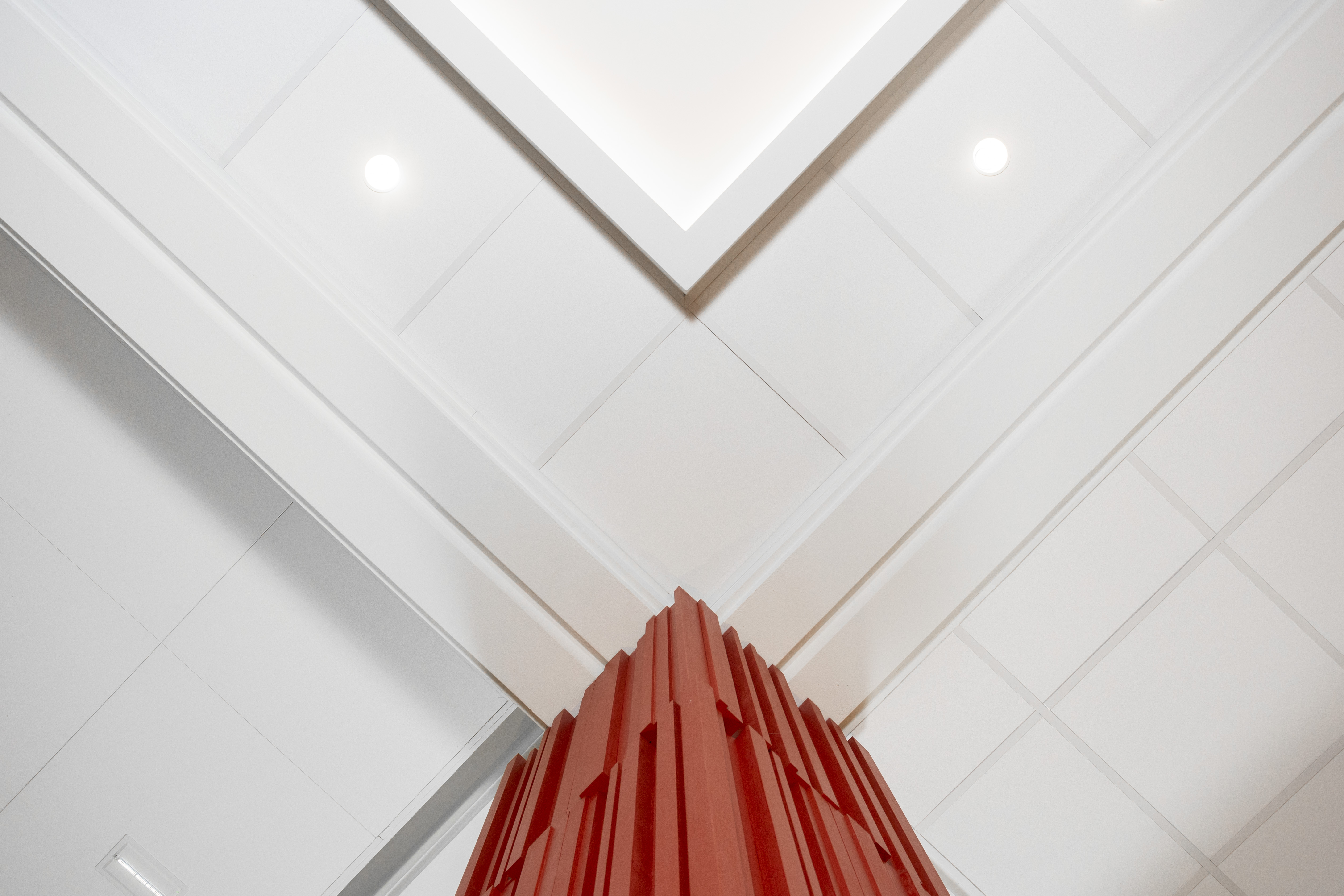Le plafond Focus™ Ds, installé en 1200 x 1200 mm est un plafond acoustique modulaire à ossature dissimulée de classe A. Elles offrent ainsi une finition lisse et élégante idéale pour renforcer la profondeur visuelle de l’espace. Celle-ci est soulignée par la taille des dalles.