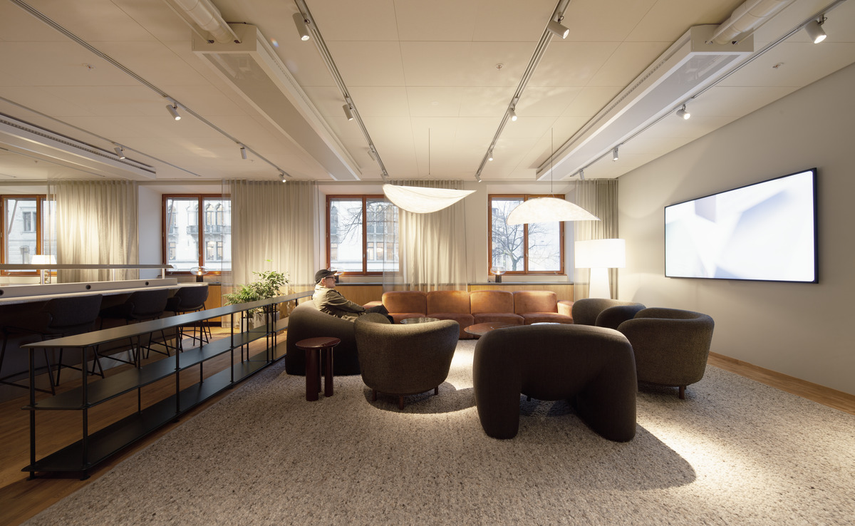 Pour assurer un environnement acoustique confortable, de l'Ecophon Master™ Ds a été installé dans les plafonds. Avec une ossature cachée, une conception à bords symétriques et une absorption acoustique élevée en classe A, cette solution combine une installation facile, une conception flexible et une esthétique épurée. Master Ds est donc un excellent choix pour les environnements de bureaux où le confort acoustique et l'expression visuelle sont essentiels.