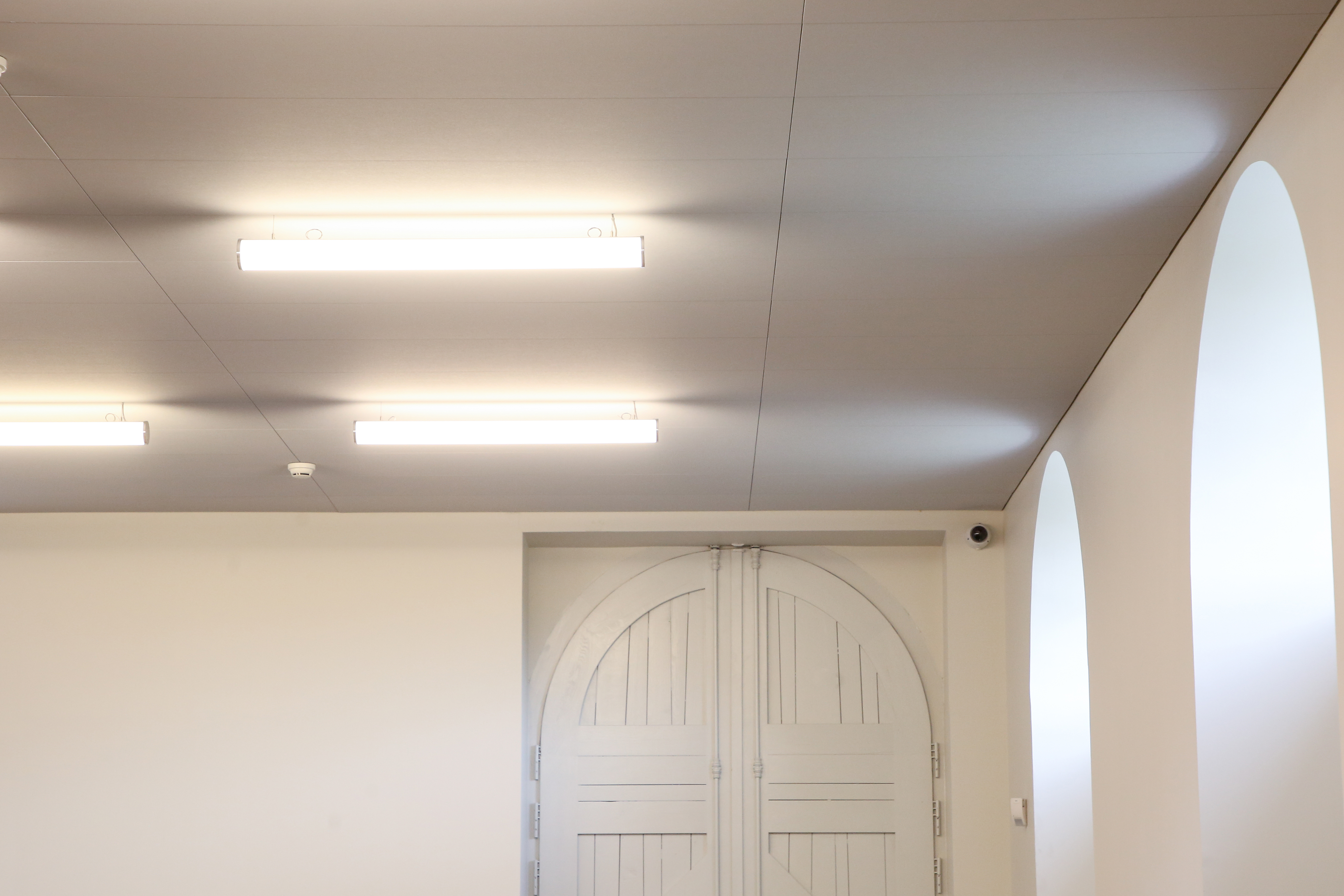 Pour répondre à ces exigences, une première solution a d’abord été envisagée : « Nous voulions laisser visible la dalle de béton brut du plafond dans la continuité de la dalle que nous avions fait couler sur le sol », précise l’architecte. Une option qui n’a pu aboutir pour des raisons acoustiques. Il a alors été décidé de déployer un plafond modulaire en dalles de plafond Ecophon FocusTM Ds, une solution qui a donné pleine satisfaction à l’ensemble des acteurs engagés dans le projet.