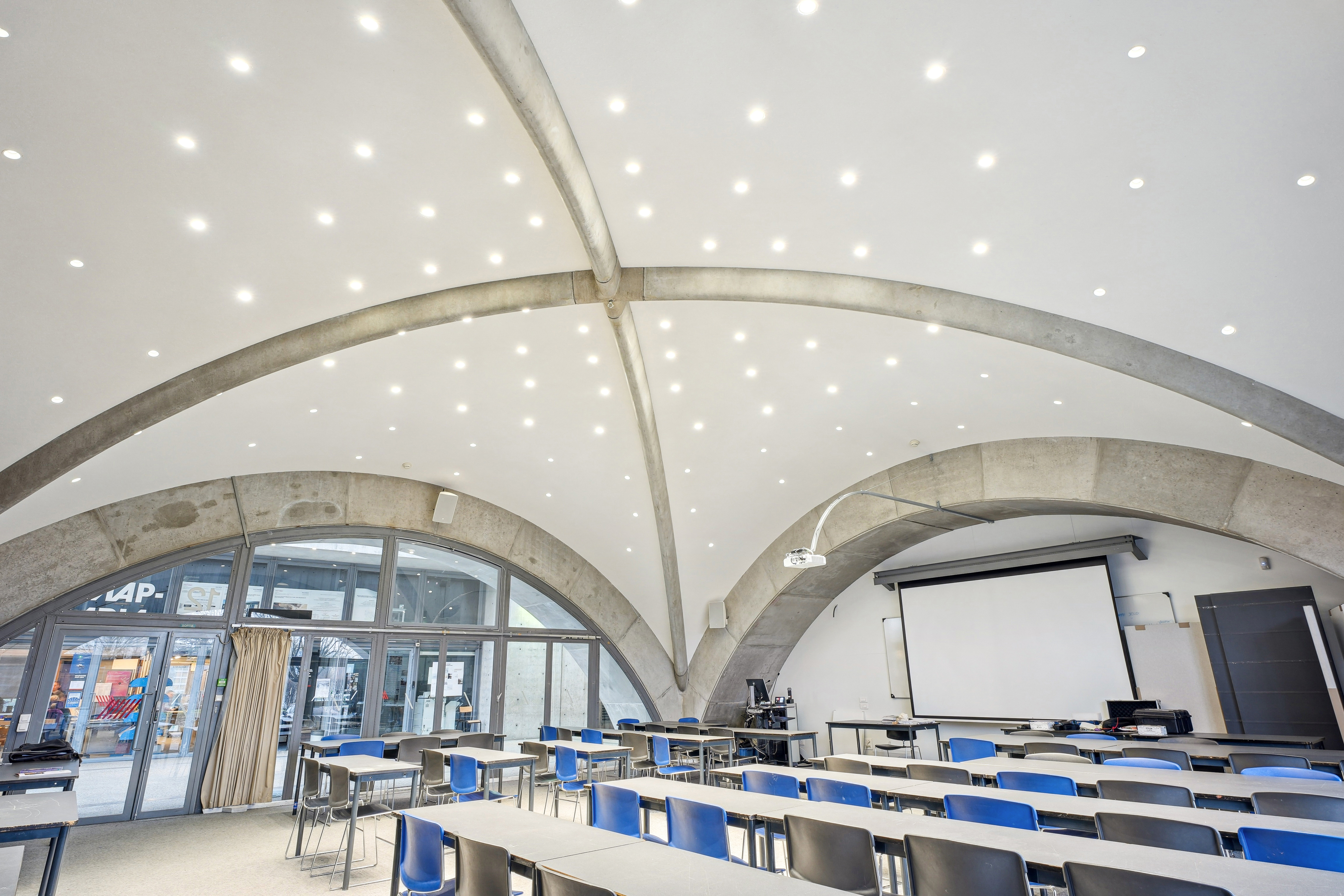 - Partenariats industriels : Saint-Gobain Ecophon a fourni la solution acoustique Fade™ Duo, adaptée aux contraintes de la salle de classe avec ses grandes voûtes.