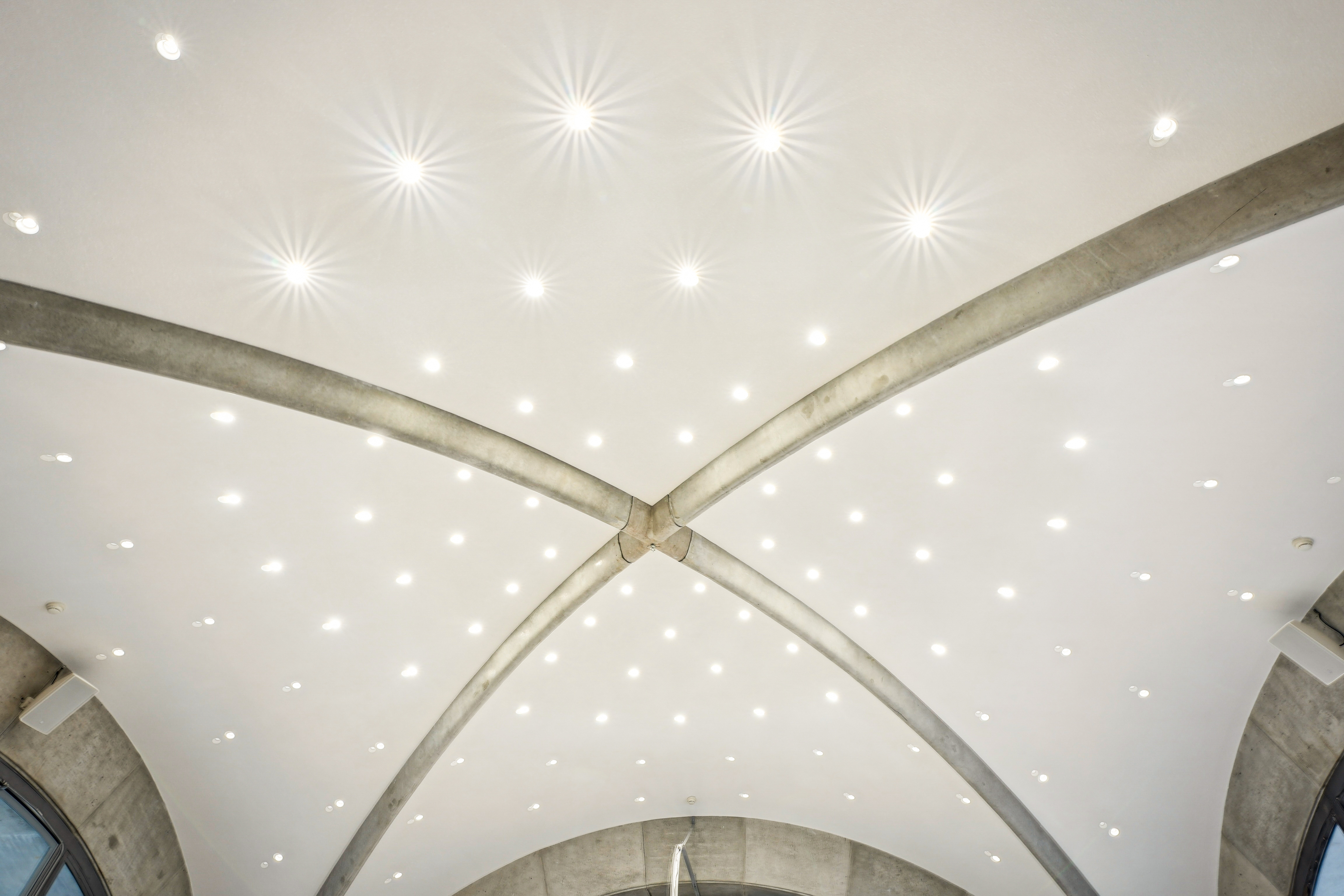 La solution Fade est un enduit acoustique appliqué par pulvérisation, conçu pour s’adapter aussi bien sur des surfaces droites que sur des plafonds voûtés. Elle permet d’obtenir un rendu homogène et continu, même sur les structures les plus complexes.