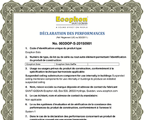Conformément à la réglementation sur les produits de construction (CPR 305/2011), les systèmes de plafonds Ecophon sont marqués CE selon la norme européenne harmonisée EN13964:2014.