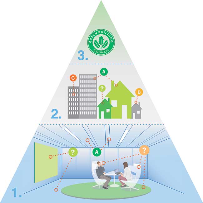 At the next level, the building as a whole is assessed. Construction standards vary and are governed by national building codes, which in turn conform to EU-wide regulations. Directly or indirectly, building codes determine which construction materials are chosen.