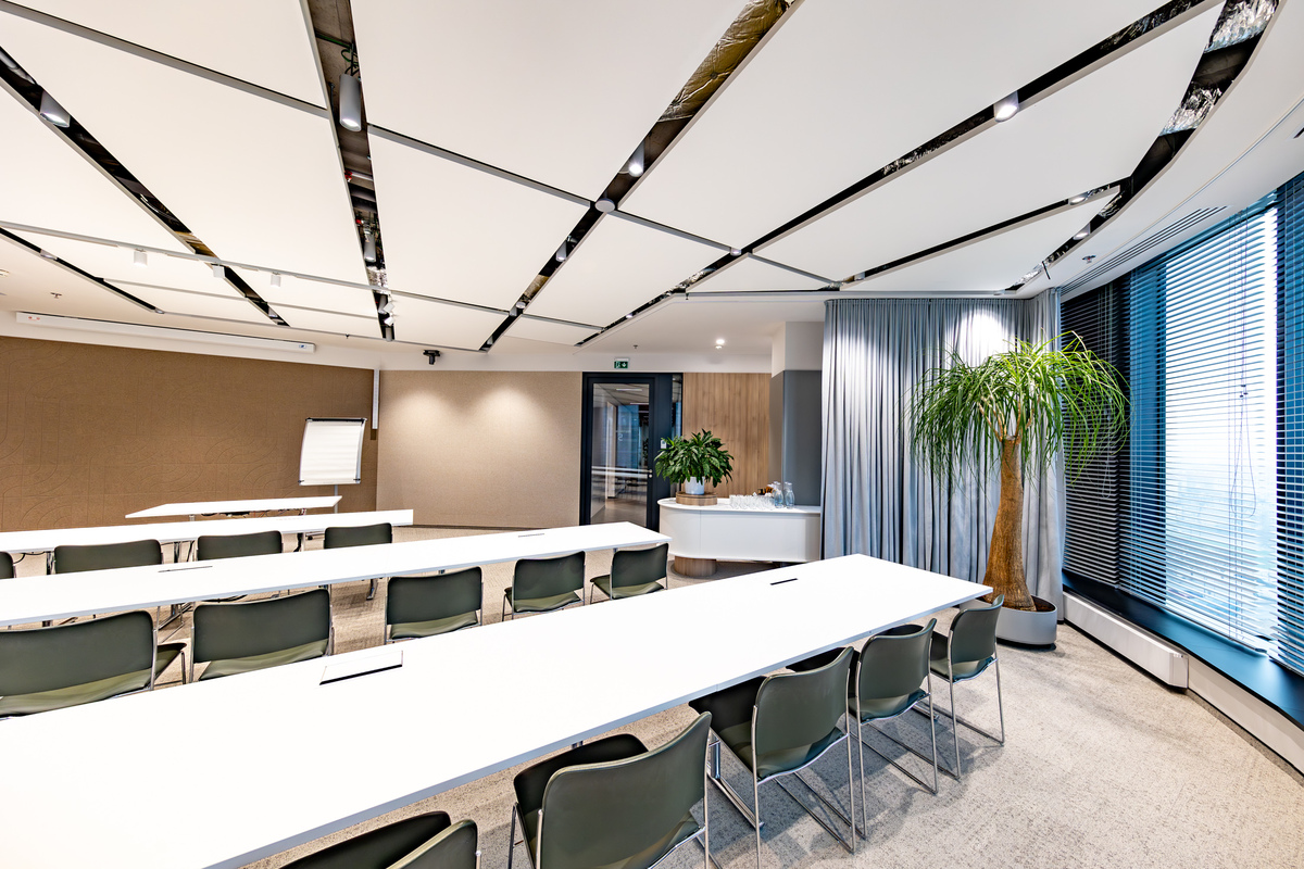 Nella selezione della loro nuova sede in Slovacchia, Deloitte ha posto un forte accento sulla sostenibilità e sul comfort degli utenti. Le nostre soluzioni acustiche versatili hanno avuto un ruolo fondamentale in questo progetto, inclusi i pannelli acustici Ecophon Solo™ Baffle, Ecophon Solo™ Circle e Ecophon Solo™ Rectangle.