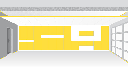 Absorbery dźwięku instaluje się jeden przy drugim lub w grupach. Jeszcze lepsze rezultaty otrzymujemy dzieląc absorbery na mniejsze pola, dzięki pomieszaniu twardych powierzchni (ściana) z dźwiękochłonnymi.