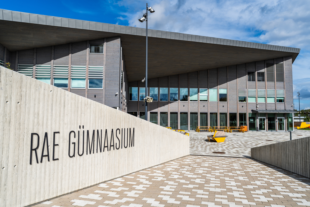 Rae Gymnasium, färdigställd 2024, är ett tydligt exempel på samtida, funktionell och hållbar arkitektur som är omsorgsfullt integrerad i den omgivande naturen. Byggnaden får sin identitet genom varma kulörer och ett generöst användande av trä, som ger både bärighet och en välkomnande, människonära interiör.