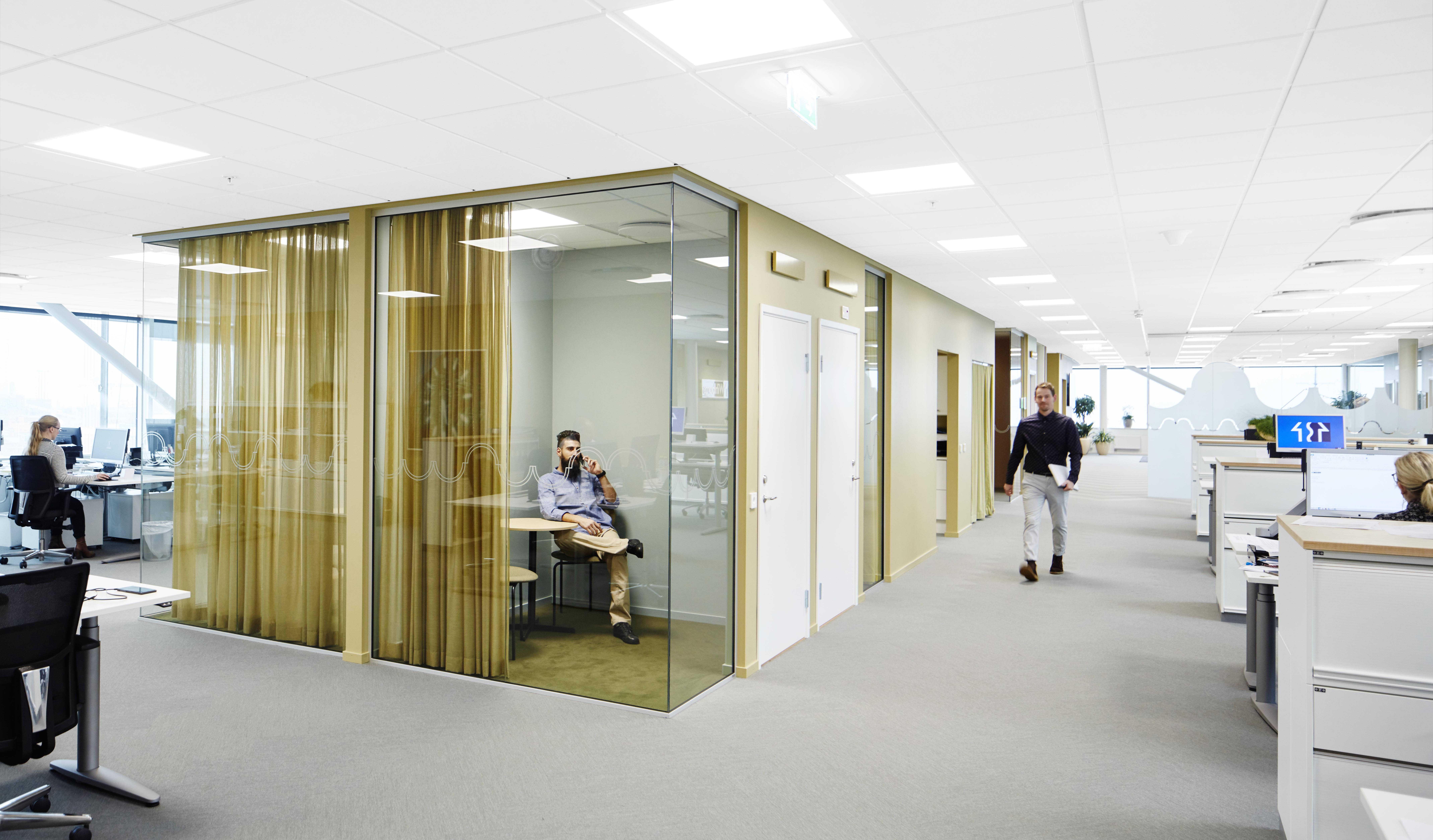 – Självklart är det inte lika lätt att fokusera på arbetet i ett öppet kontorslandskap som i ett enskilt kontor. Men samtidigt ser vi, att på kontor där man har möjlighet att gå och sätta sig någon annanstans, är det många som trivs med att arbeta i ett kontorslandskap.