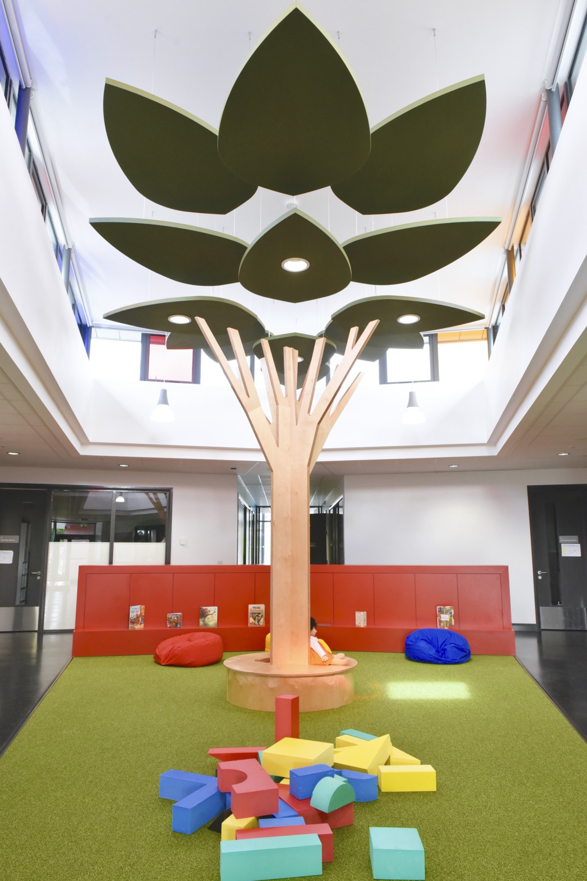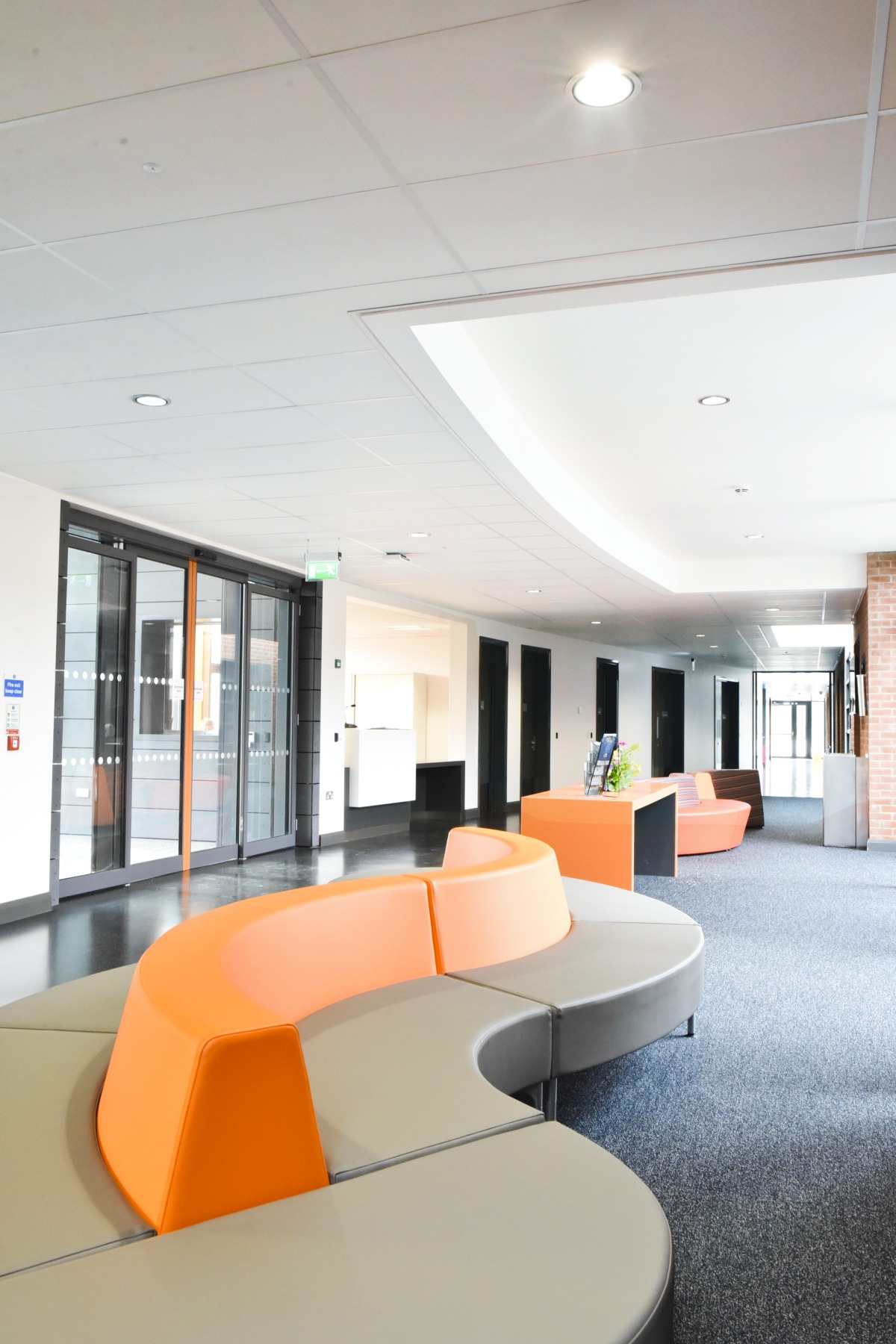“Special schools play to our strengths,” said Andrew Acheson, the company’s Area Manager for Northern Ireland.“Acoustically speaking, learning environments are demanding premises, and for children and young people with special needs it is even more important to get the acoustics right. On this project we worked closely with the architect and the main contractor, Woodvale Construction. At the behest of the school, our design office in England came up with a bespoke design for the ceiling panels leading into the communal hub breakout areas. We used 14 Solo Freedom panels and changed the shape from the standard rectangular panels into leaf shapes, which were then painted green to tie in with an ongoing nature theme in parts of the building. It was a one-off design and has resulted in a very unique feature, which at the same time provides a high-performance sound solution suitable for an educational environment,” said Andrew.