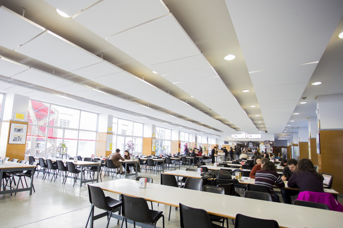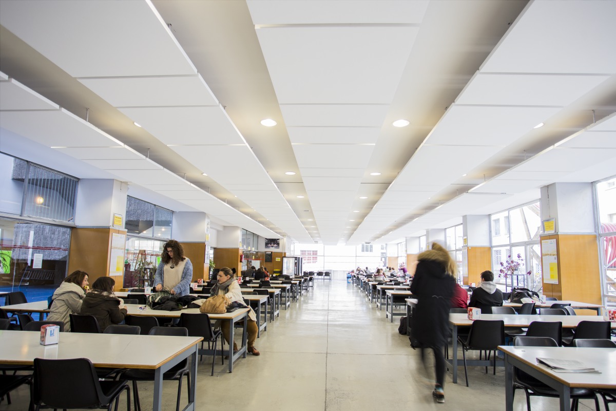 One of Spain’s leading acousticians, Dr. César Diaz, was in charge of making acoustic measurements before and after the installation. The large students cafeteria was treated with 50% coverage of Master Matrix and the effects were clear: